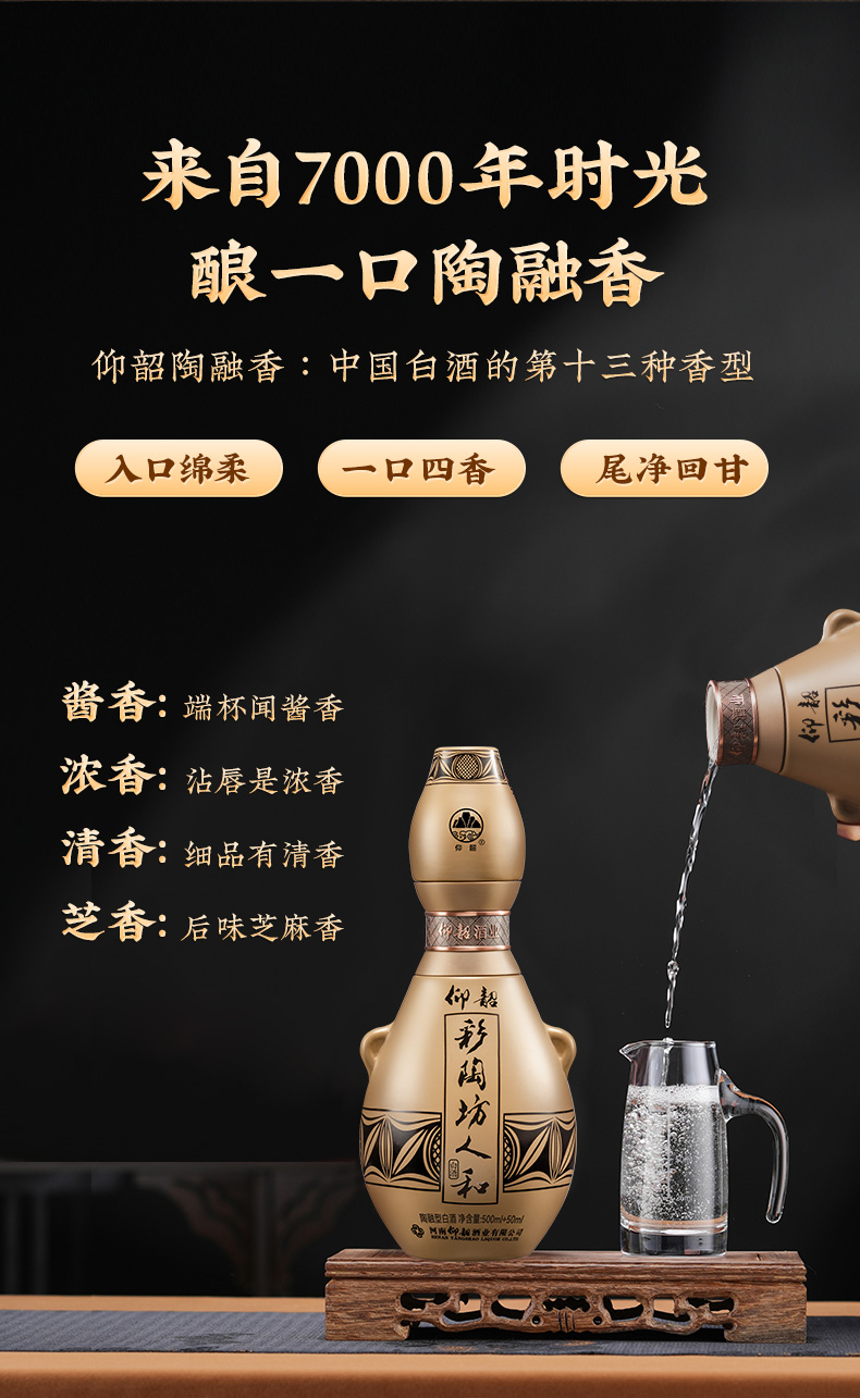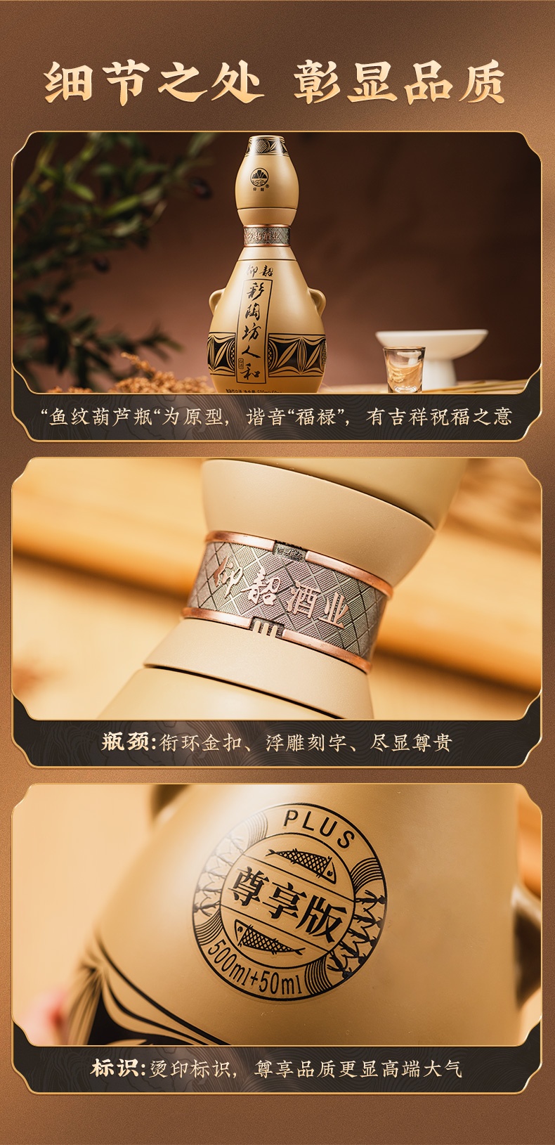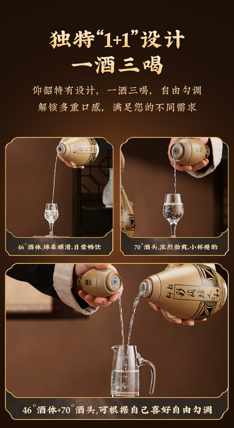 河南仰韶彩陶坊 人和尊享plus版 加量装 礼盒装500ml46度+50ml70度酒头