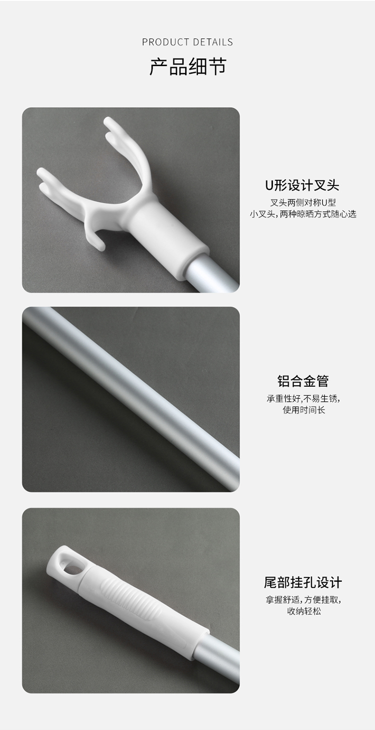 美丽雅晾衣杆 可伸缩撑衣杆金属挂衣杆阳台室内可调节晾衣杆 1只
