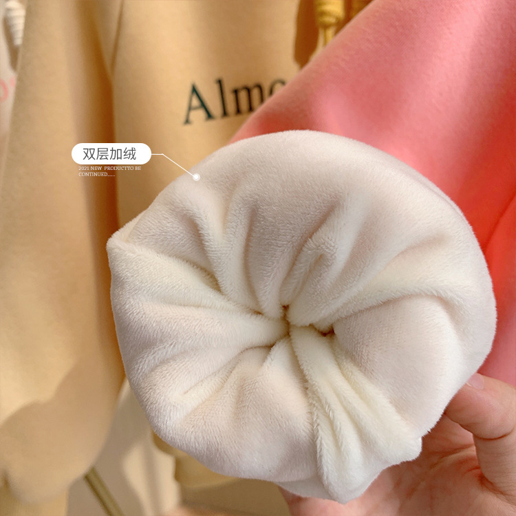 【超柔加厚绒,仙气十足】银狐绒童装女童卫衣让宝贝告别寒冷秋冬!三色可选,靓丽时髦尽显个性。名字母印花,展示小公主的独特魅力。安全帽绳设计,呵护宝贝成长。纤薄轻盈又保暖,穿着舒适不束缚!#异业福利