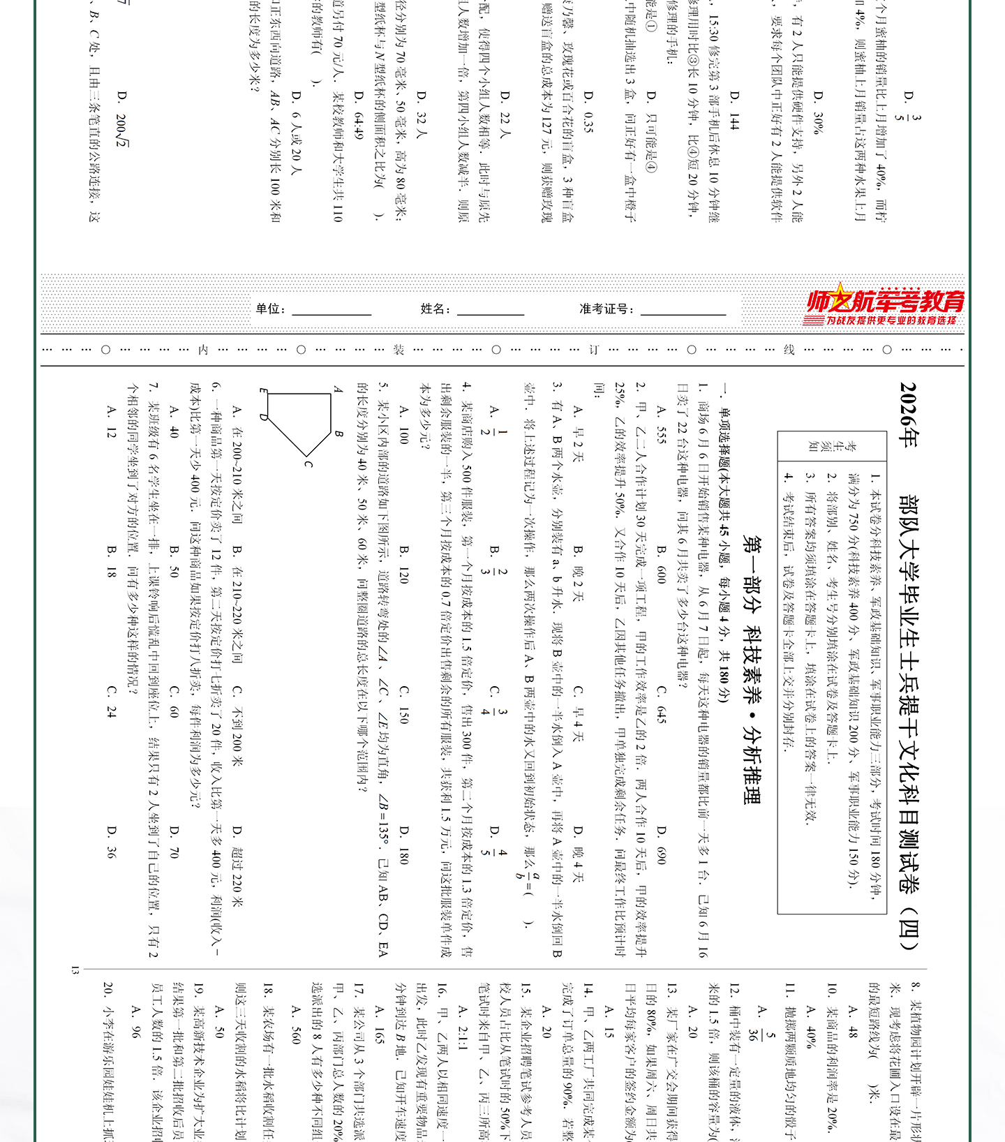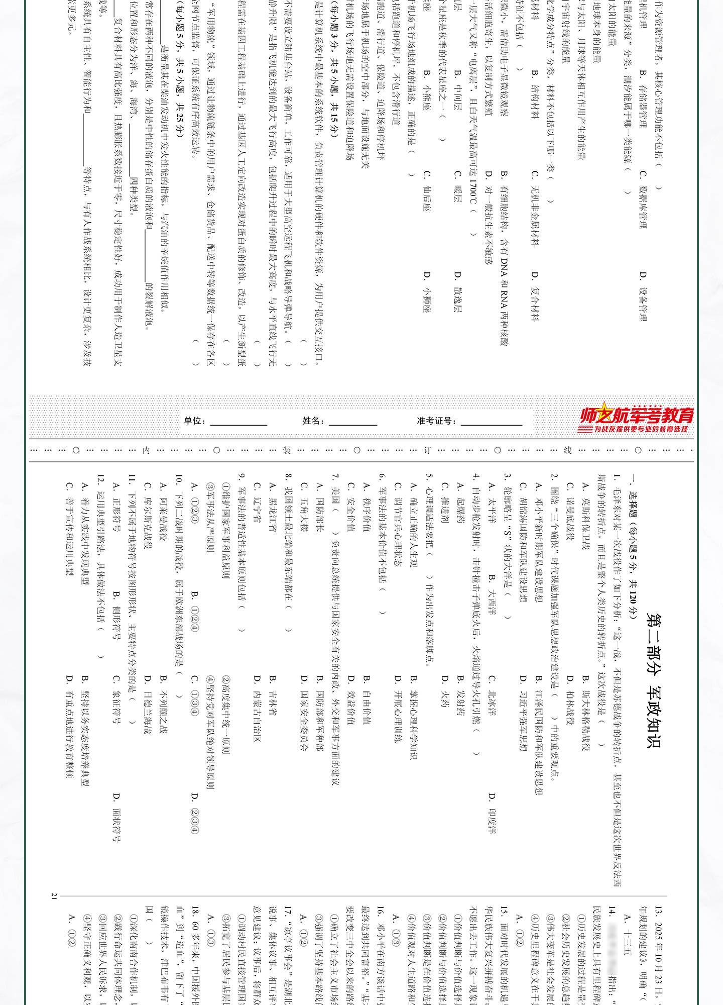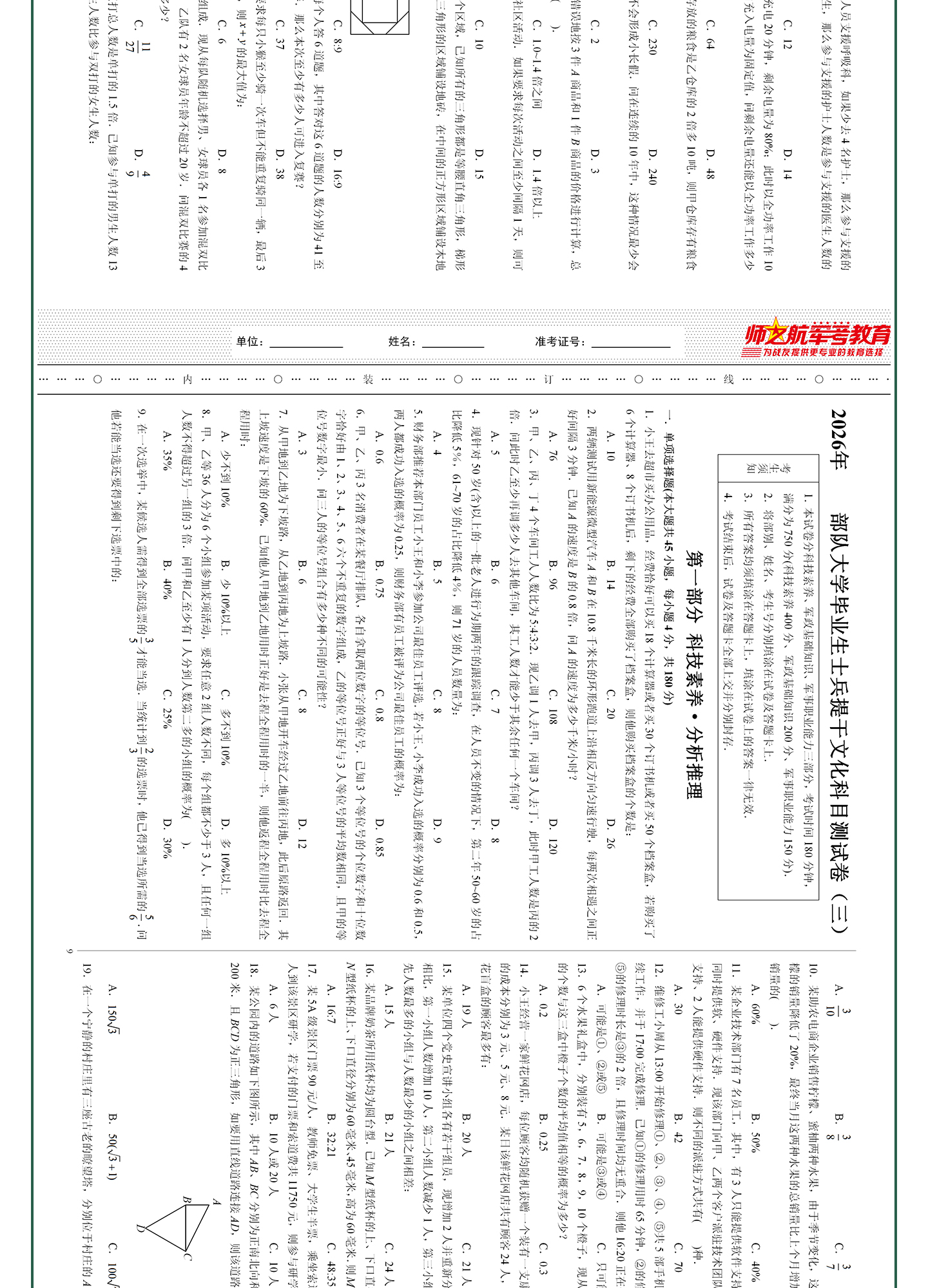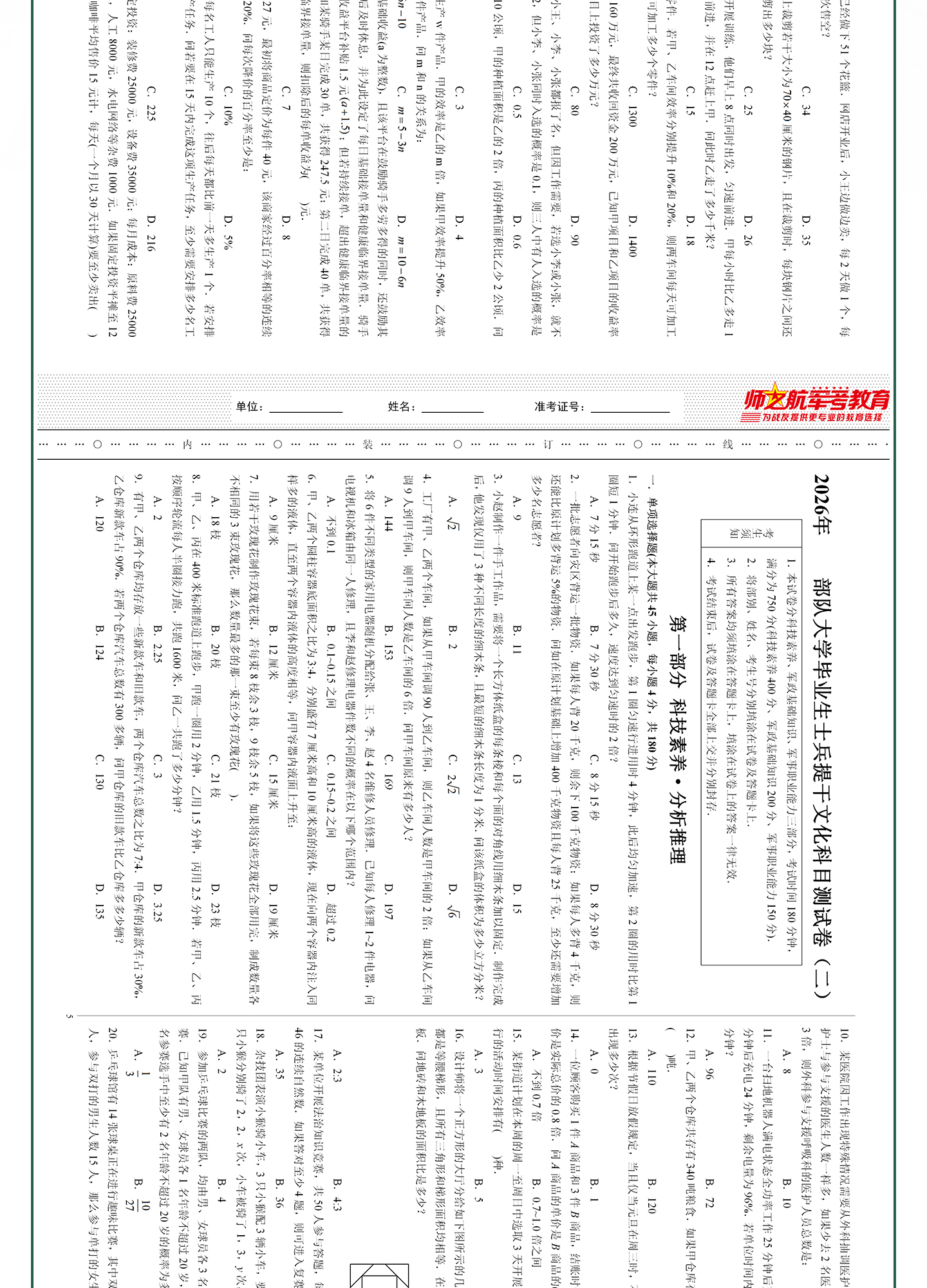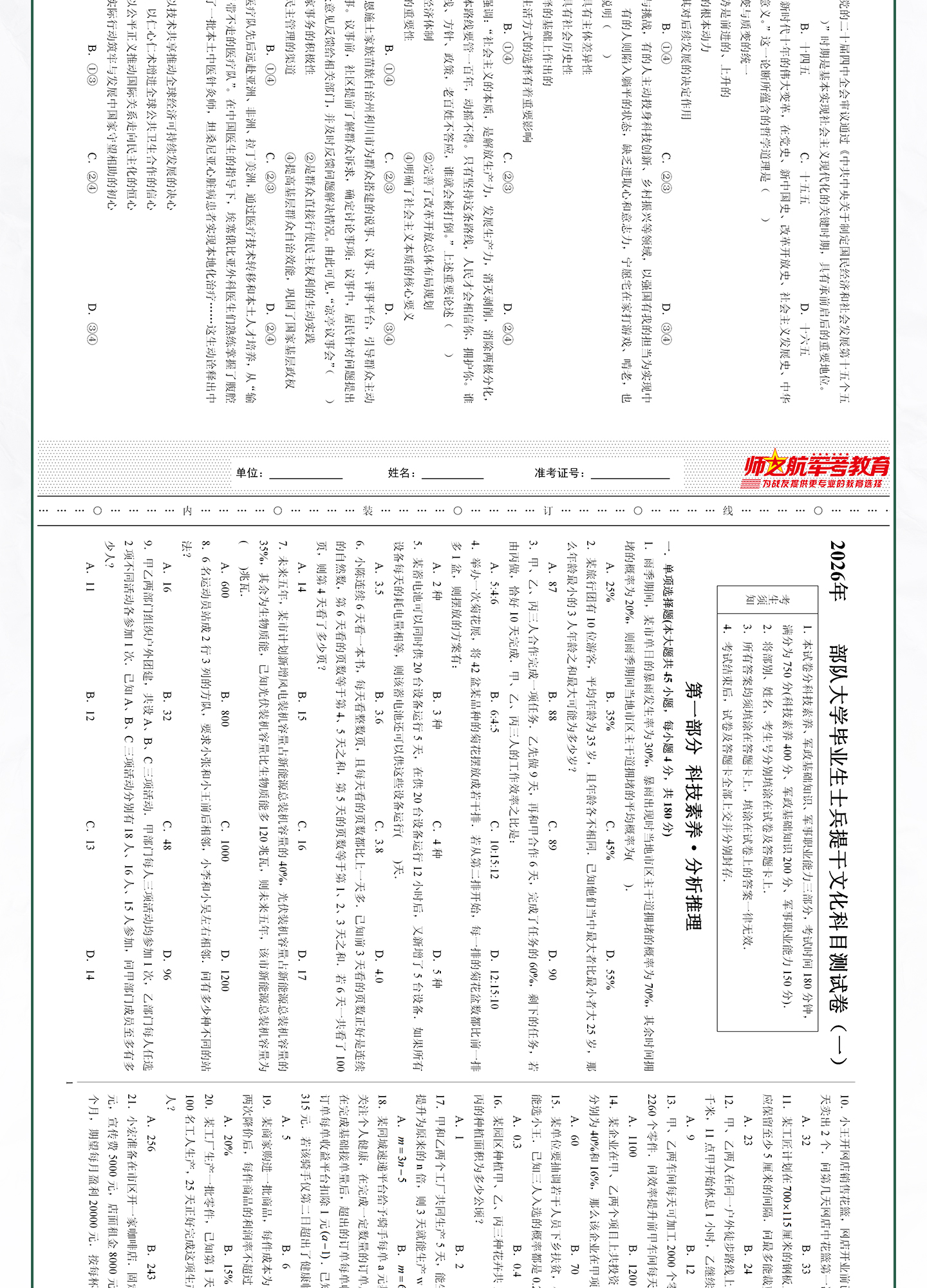 2026年军考士兵本科提干资料每日一练军考教材材料试题新版