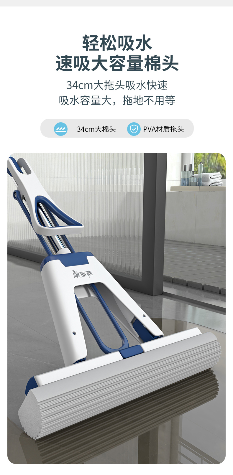 【飞翼铝杆】美丽雅干湿两用懒人免手洗吸水海绵拖把大中小型号