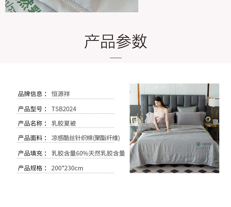 恒源祥 天然乳胶被200*230 乳胶含量60%