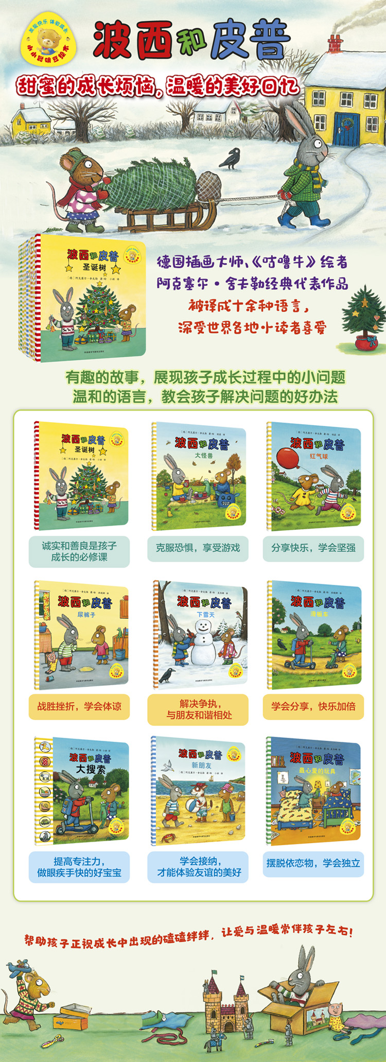 《波西和皮普:圣诞树》:圣诞节要到了,波西和皮普一起用一些漂亮的点心装点圣诞树,但是这些点心竟然接二连三地神秘失踪了。没过多久,皮普开始觉得不舒服。你知道这是为什么吗?