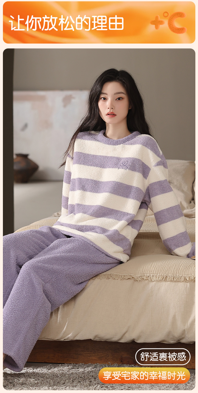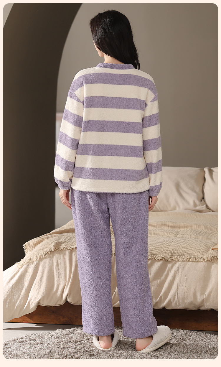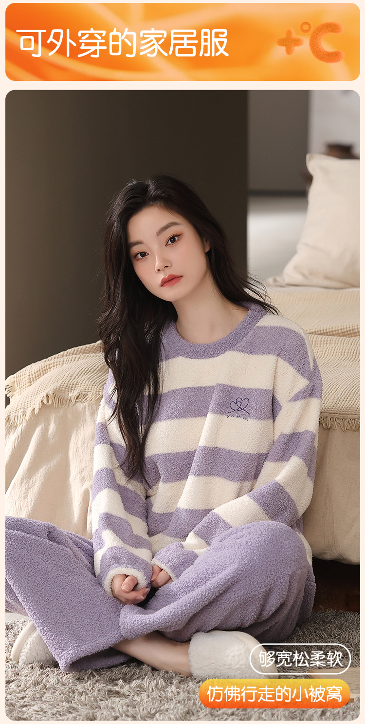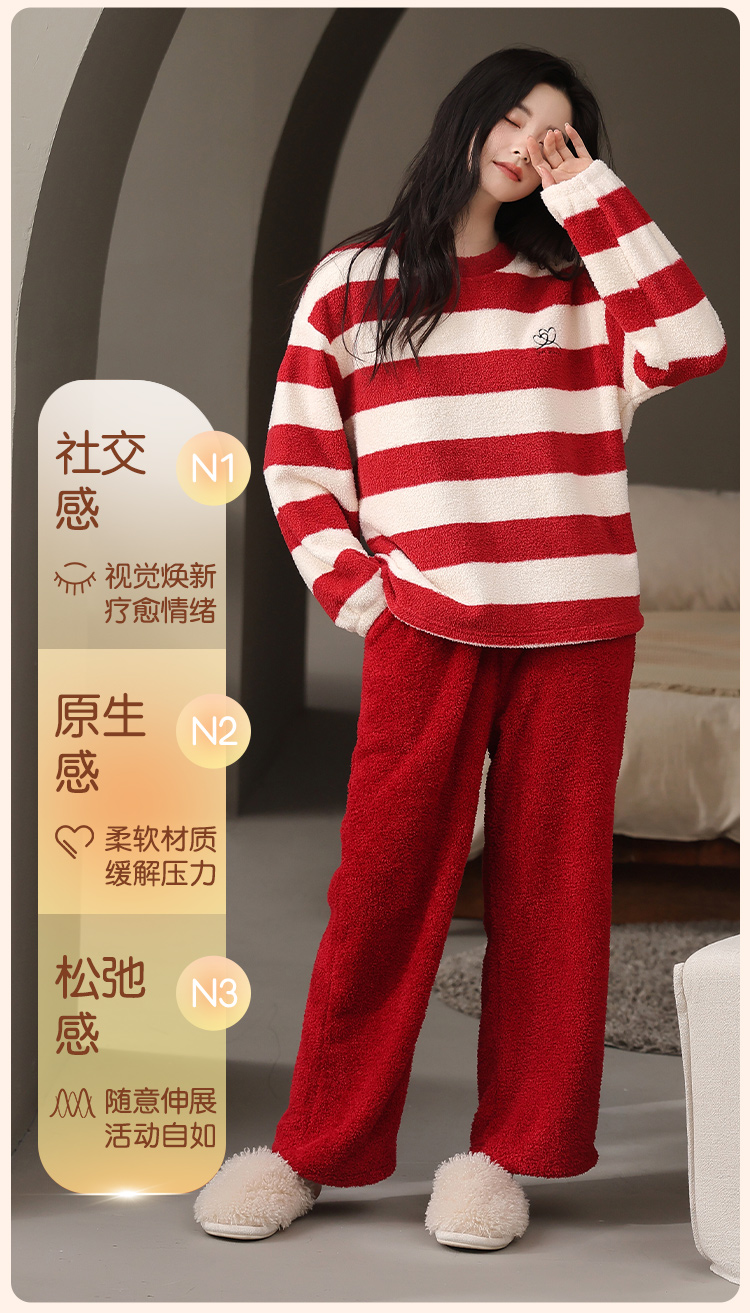 【M-2XL】【猫人】女士条纹半边绒家居服套装