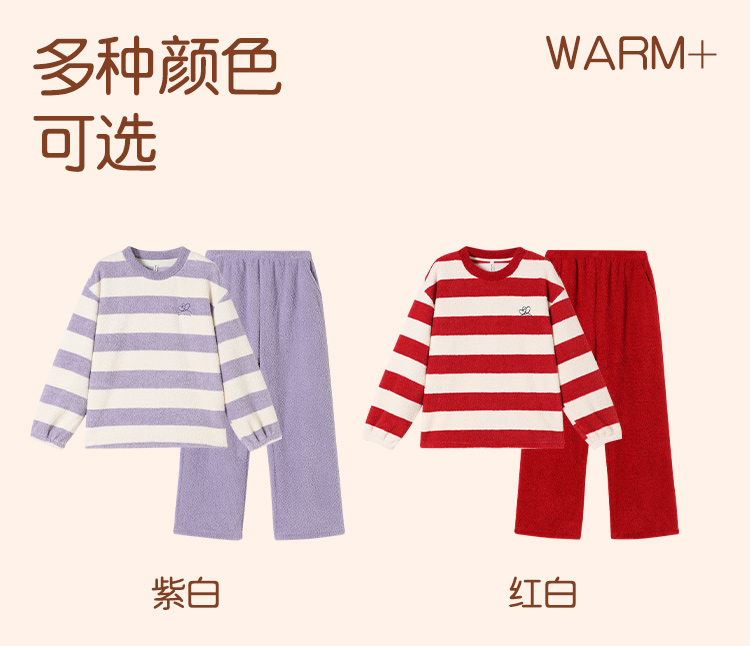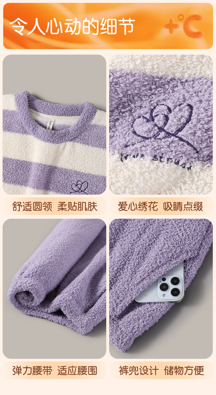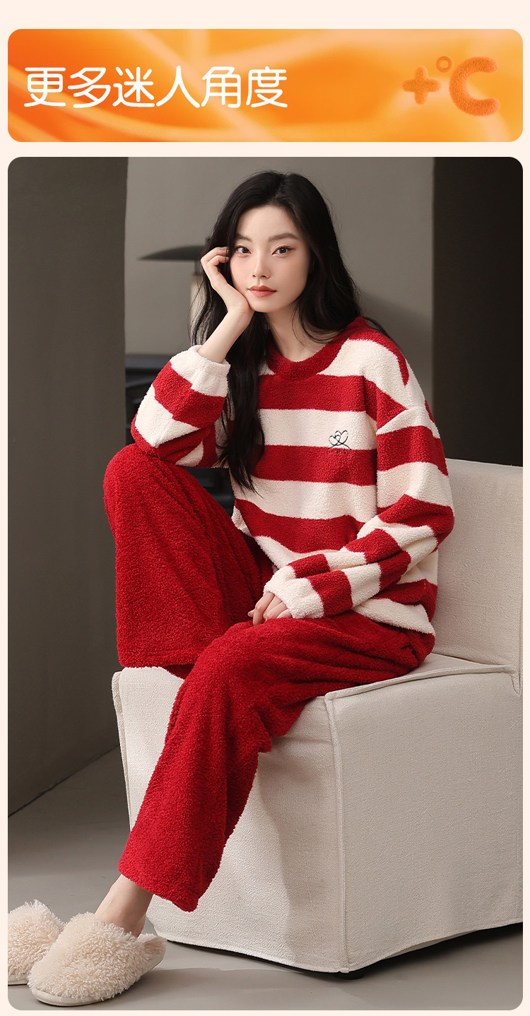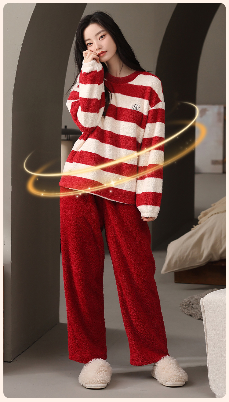 【M-2XL】【猫人】女士条纹半边绒家居服套装
