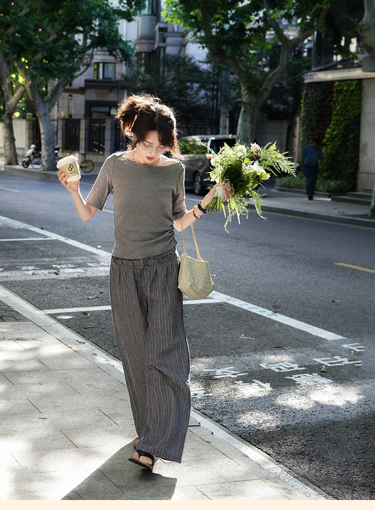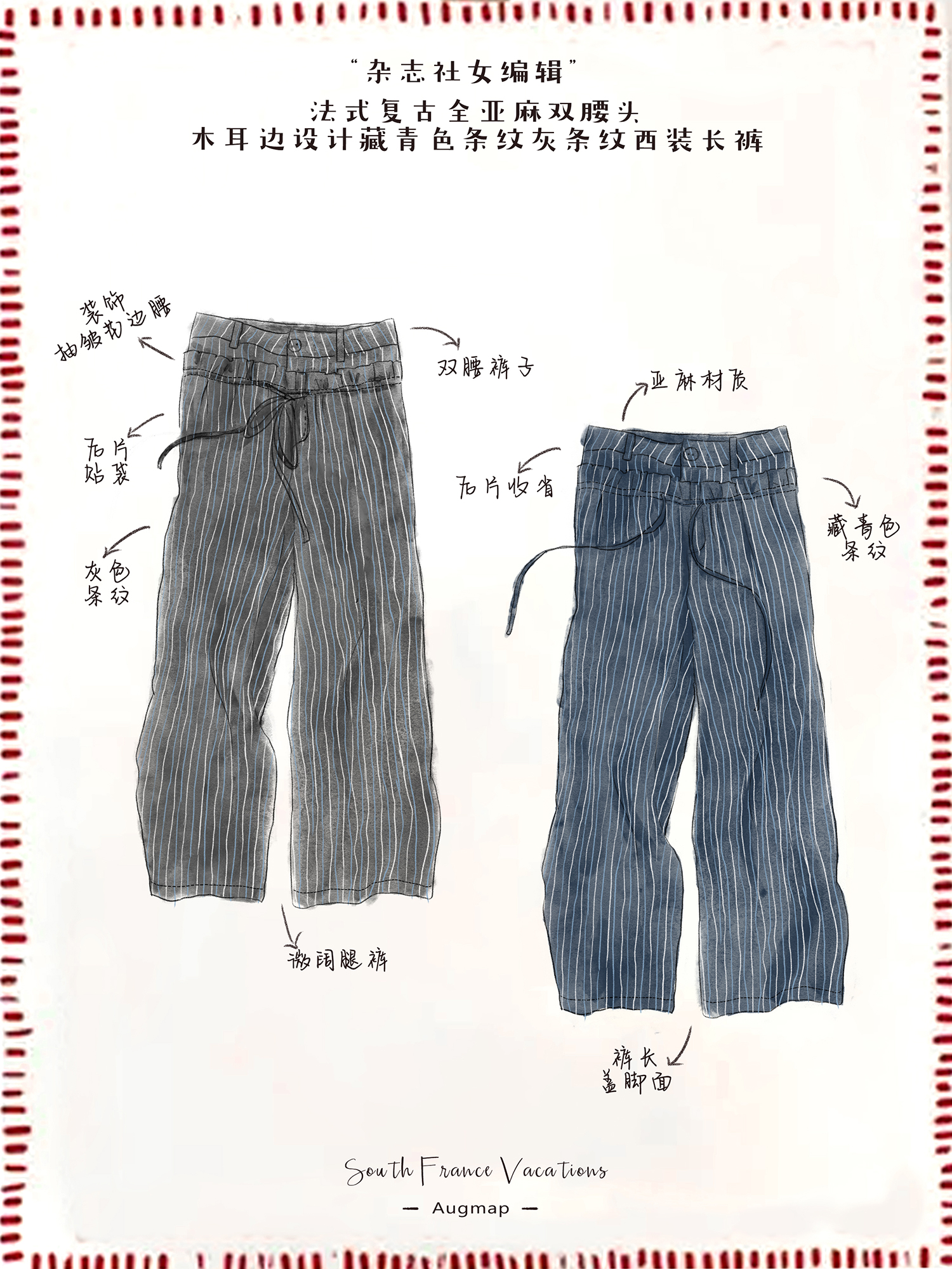 浮生八记/25B101/休闲裤女双腰头西装裤