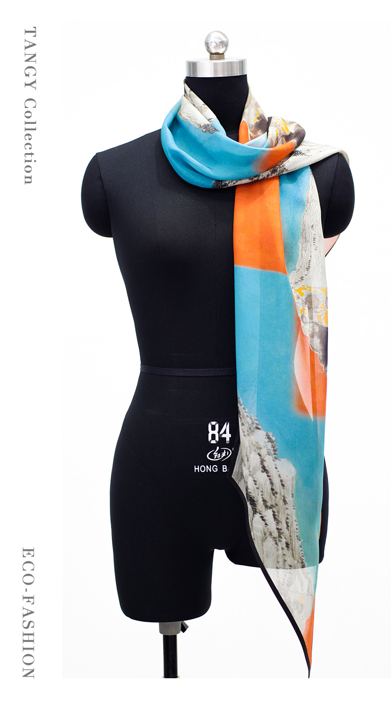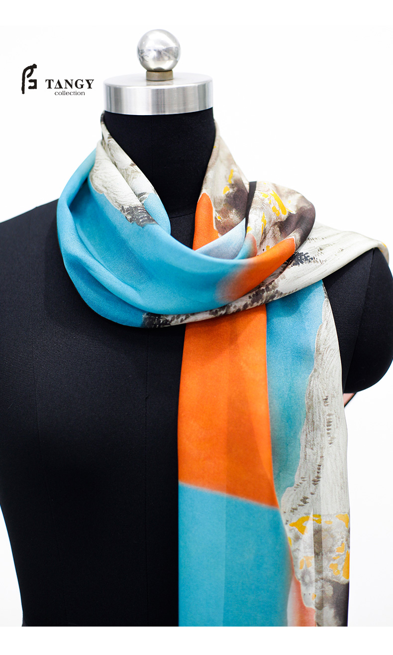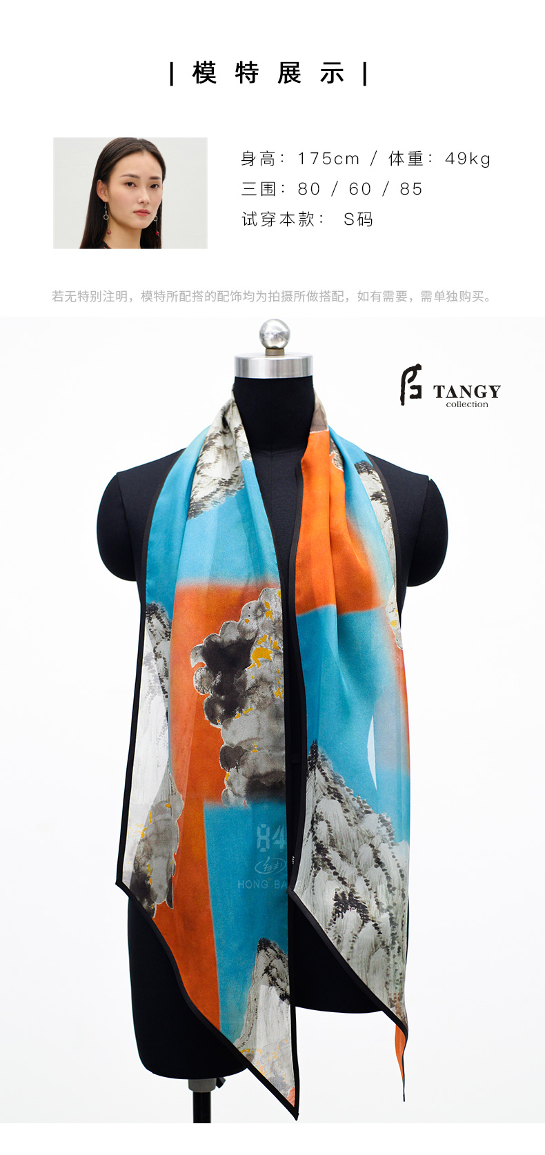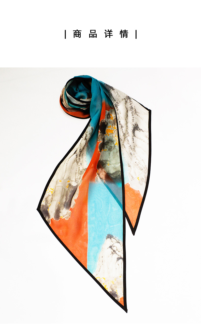 TANGY Collection天意精品2024春季新款联名款敦煌系列晕染民族风100%真丝莨绸包边围巾L241415