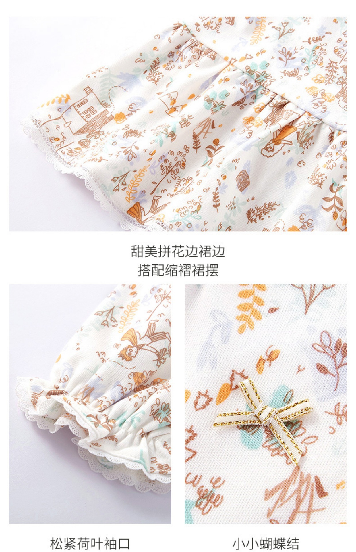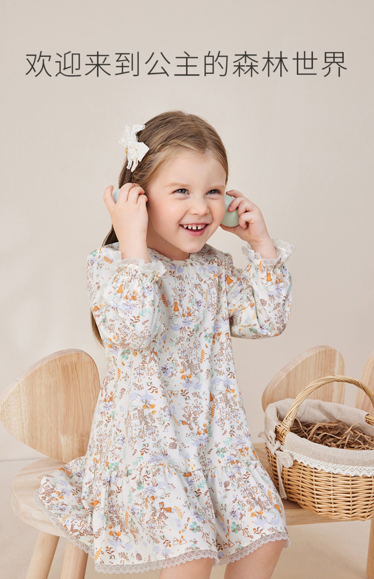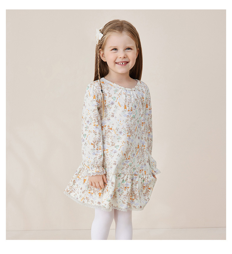 英氏女童连衣裙秋新品宝宝休闲裙子长袖碎花公主裙YRLAJ32130A