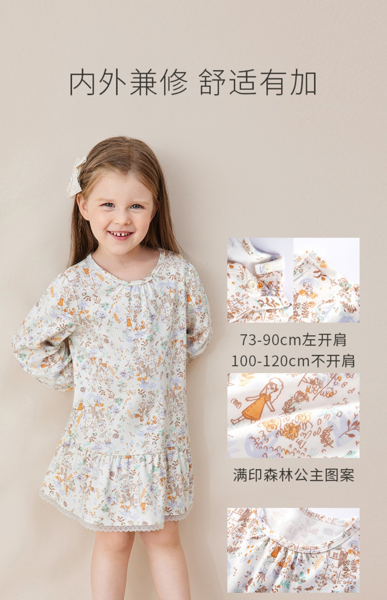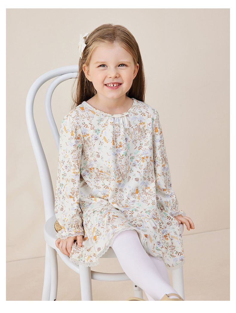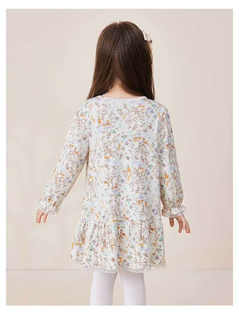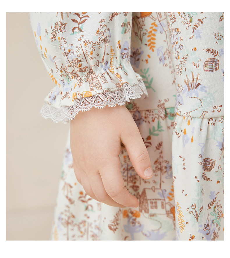 英氏女童连衣裙秋新品宝宝休闲裙子长袖碎花公主裙YRLAJ32130A
