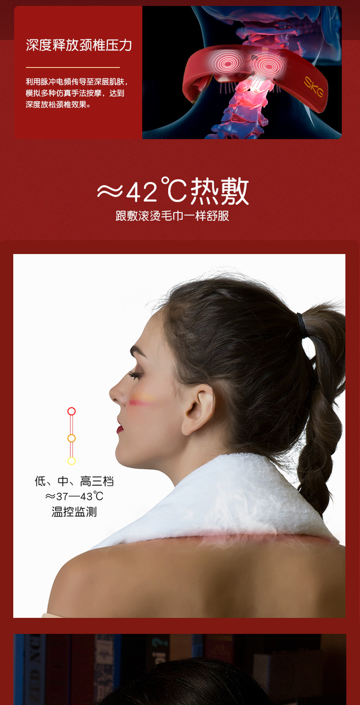 SKG颈椎按摩器4330定制红色款肩颈按摩热敷多功能脉冲护颈仪