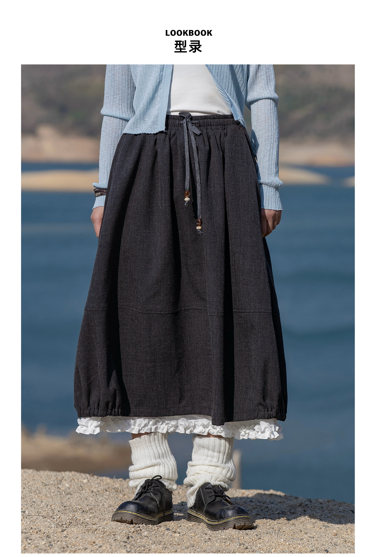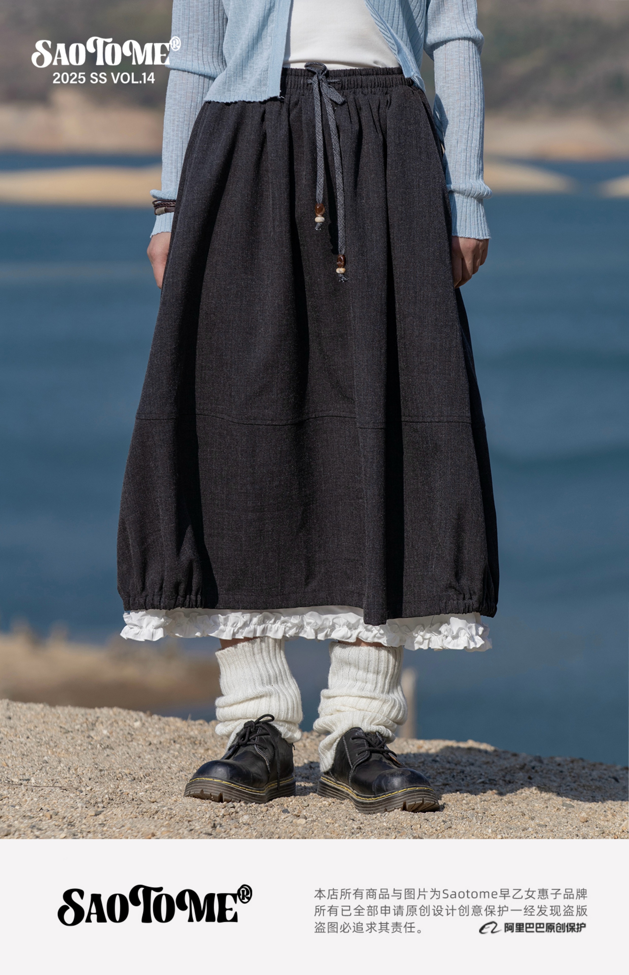 早乙女惠子saotome/STMQZ252288/木耳边假两件花苞半裙