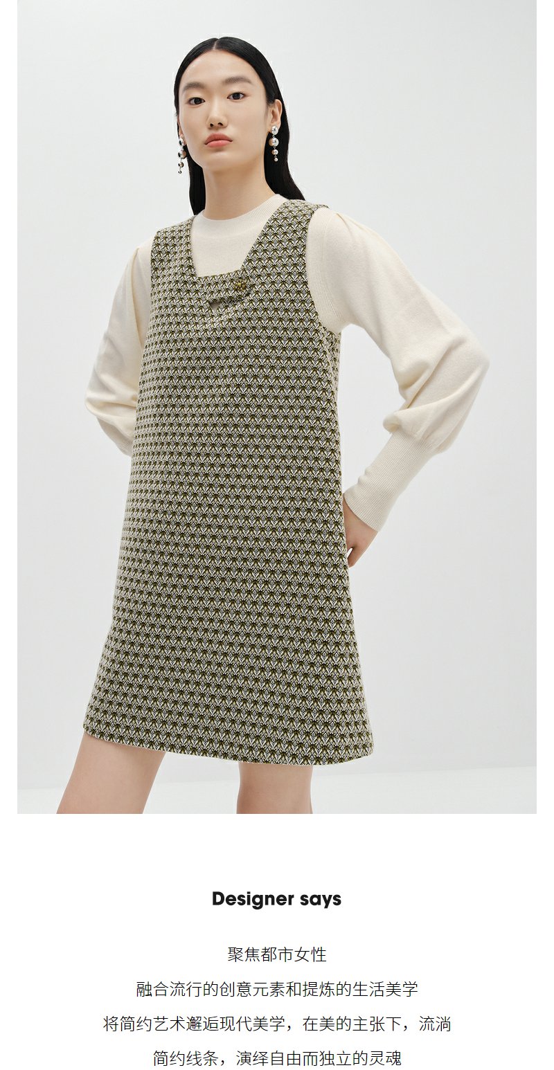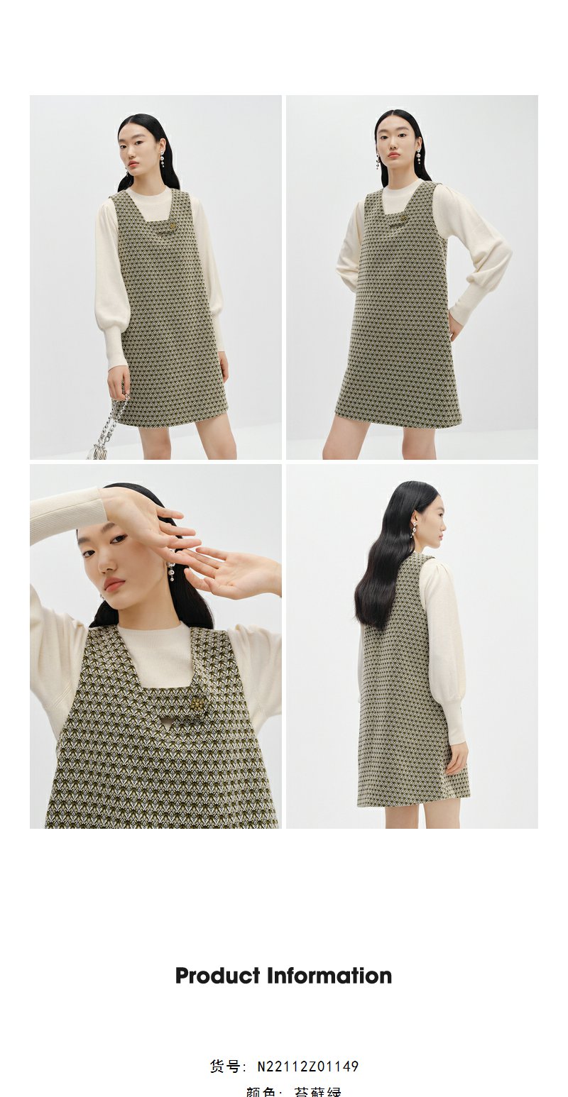 NEELLY纳俪商场同款时尚套装针织衫女新款背心连衣裙中长款A字裙N22112Z01149