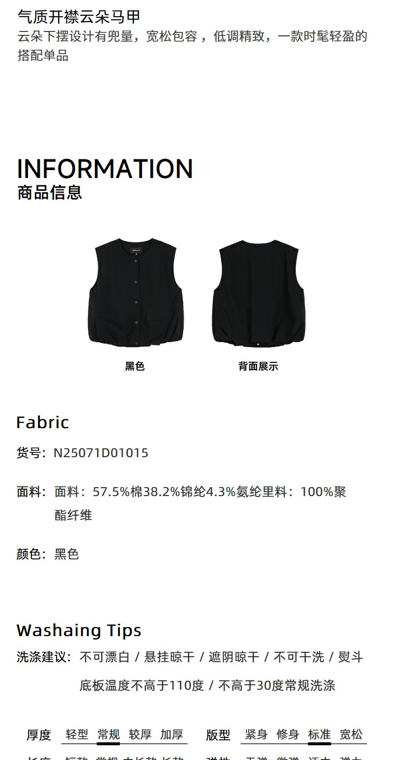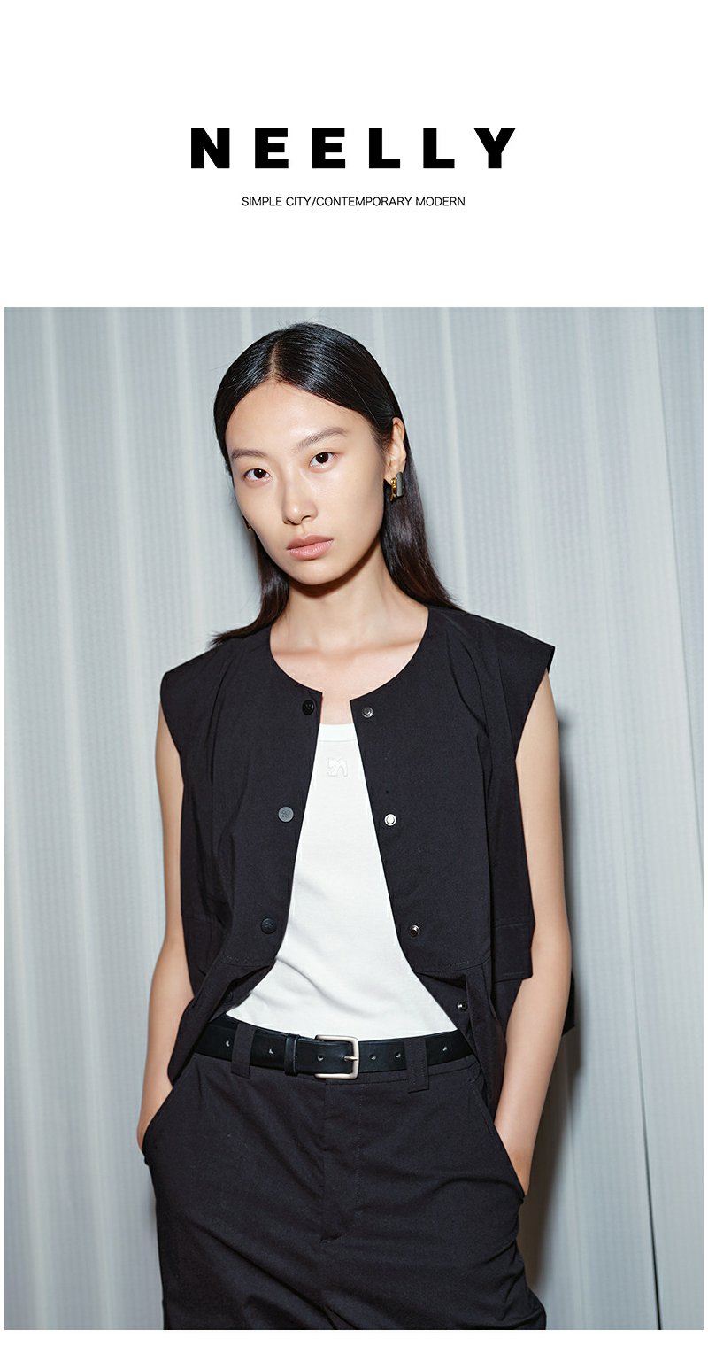 NEELLY纳俪商场同款夏季新款气质开襟云朵马甲女舒适休闲无袖上衣N25071D01015