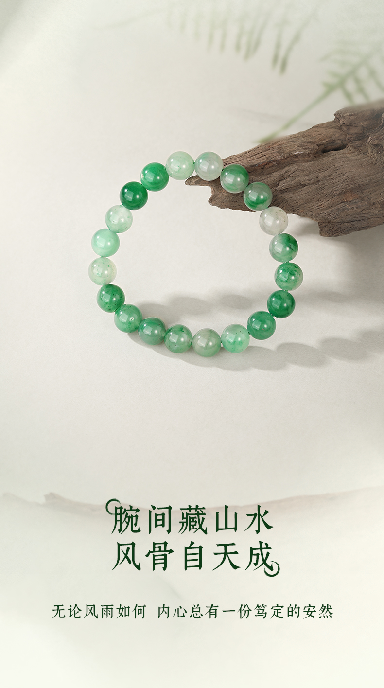 周六福青山叠翠非洲翠手串ZLF-J123082-9mm★