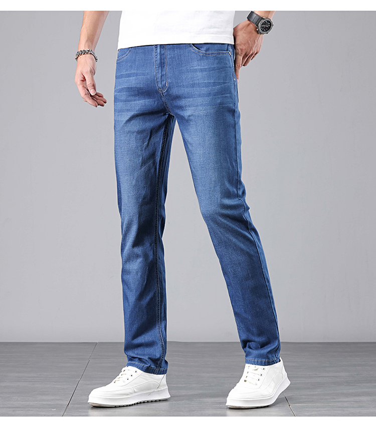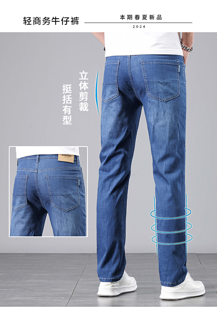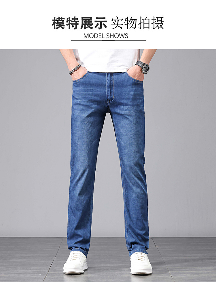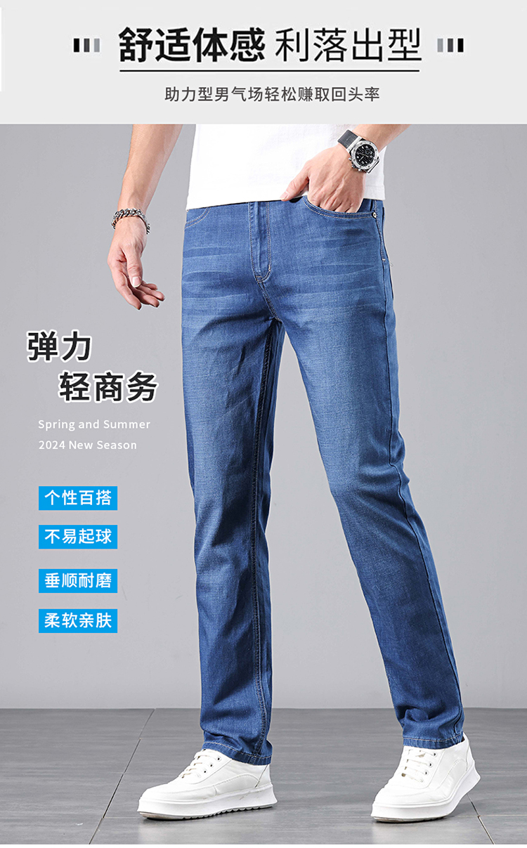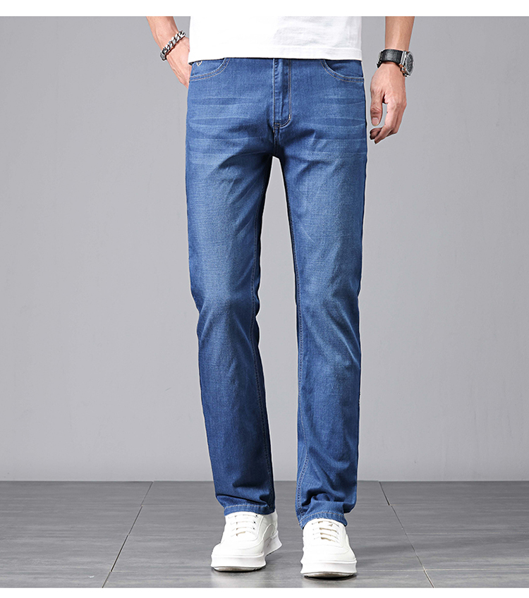 赤兔嗨购男装宽松直筒弹力不束缚牛仔裤蓝色2024年秋冬新款水洗长裤宽腿
