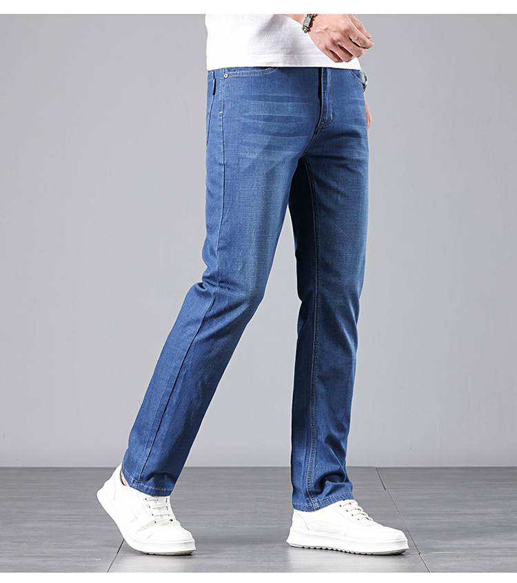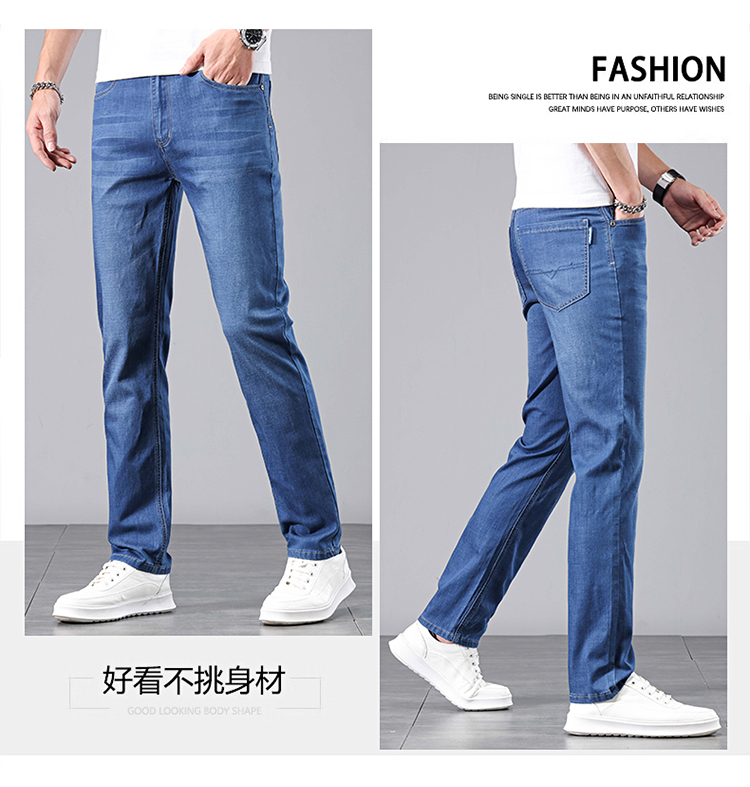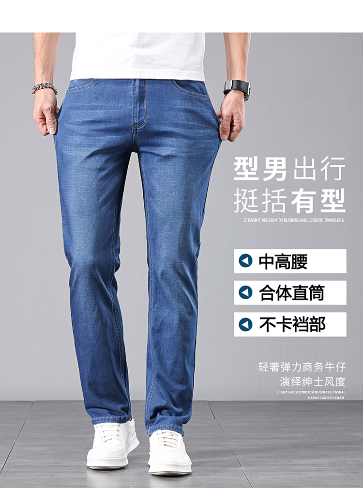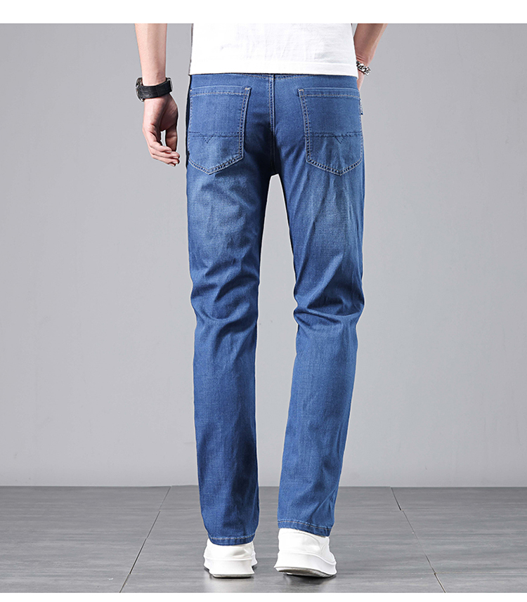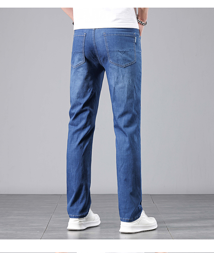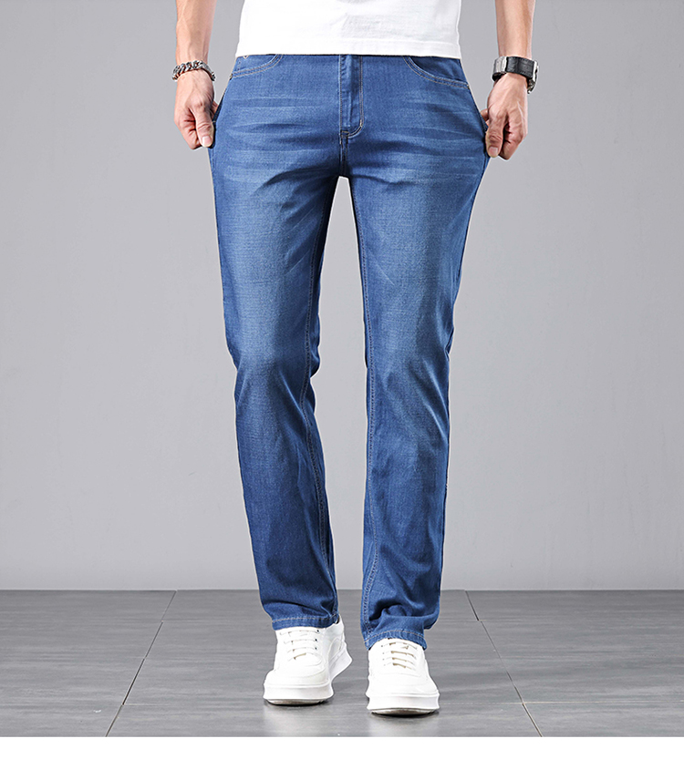 赤兔嗨购男装宽松直筒弹力不束缚牛仔裤蓝色2024年秋冬新款水洗长裤宽腿