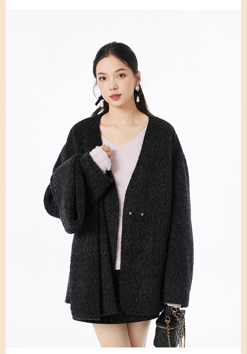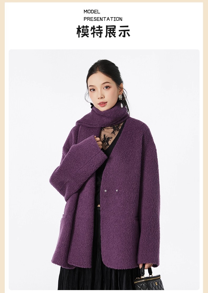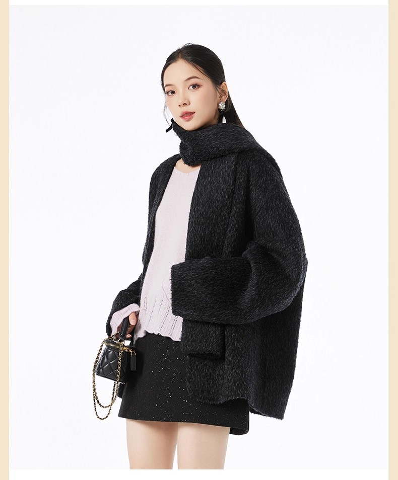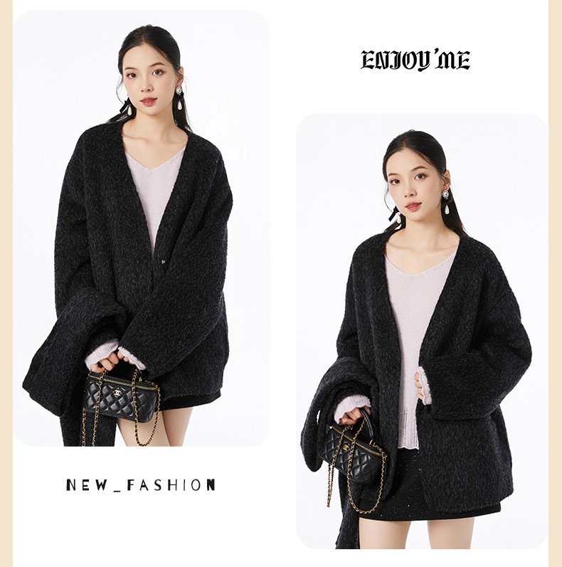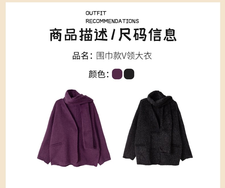【门店同款】ENJOY冬季“暖冬软糖”围巾款V领大衣 167694956