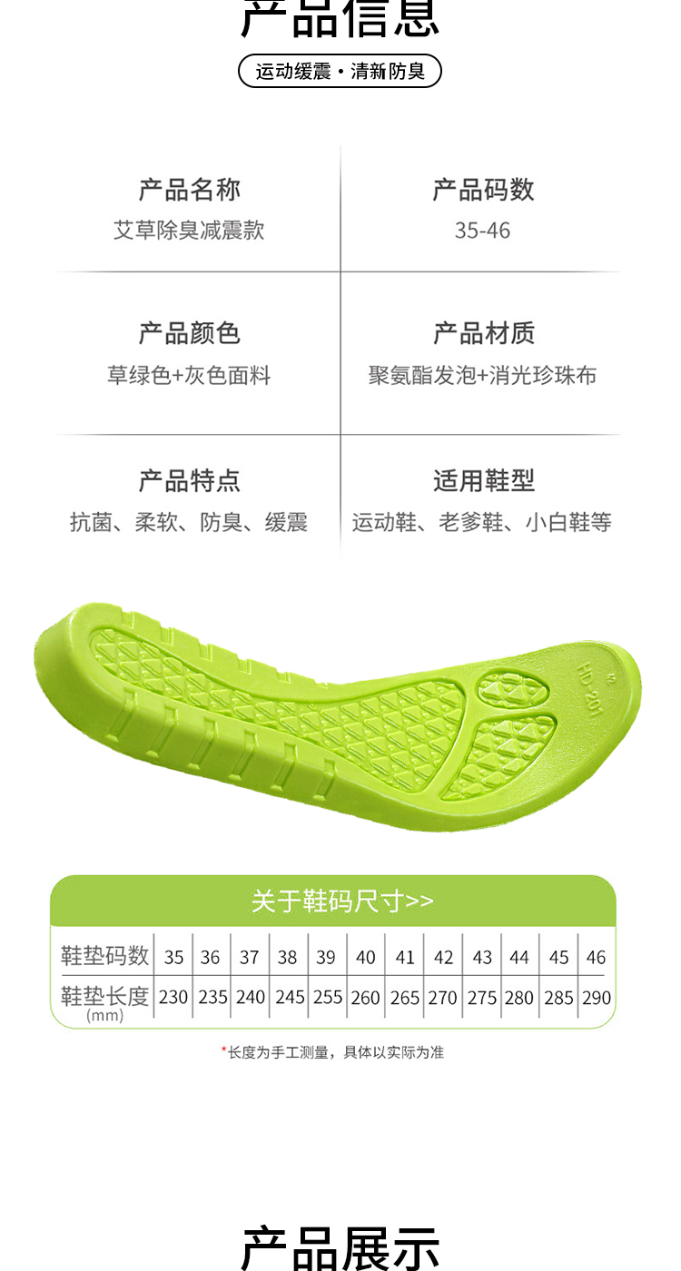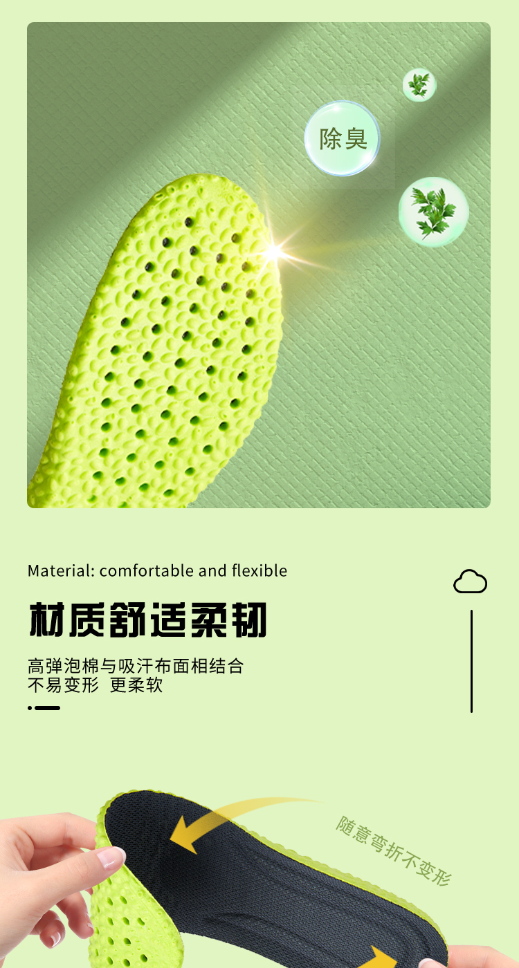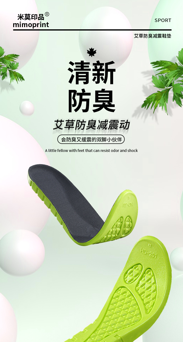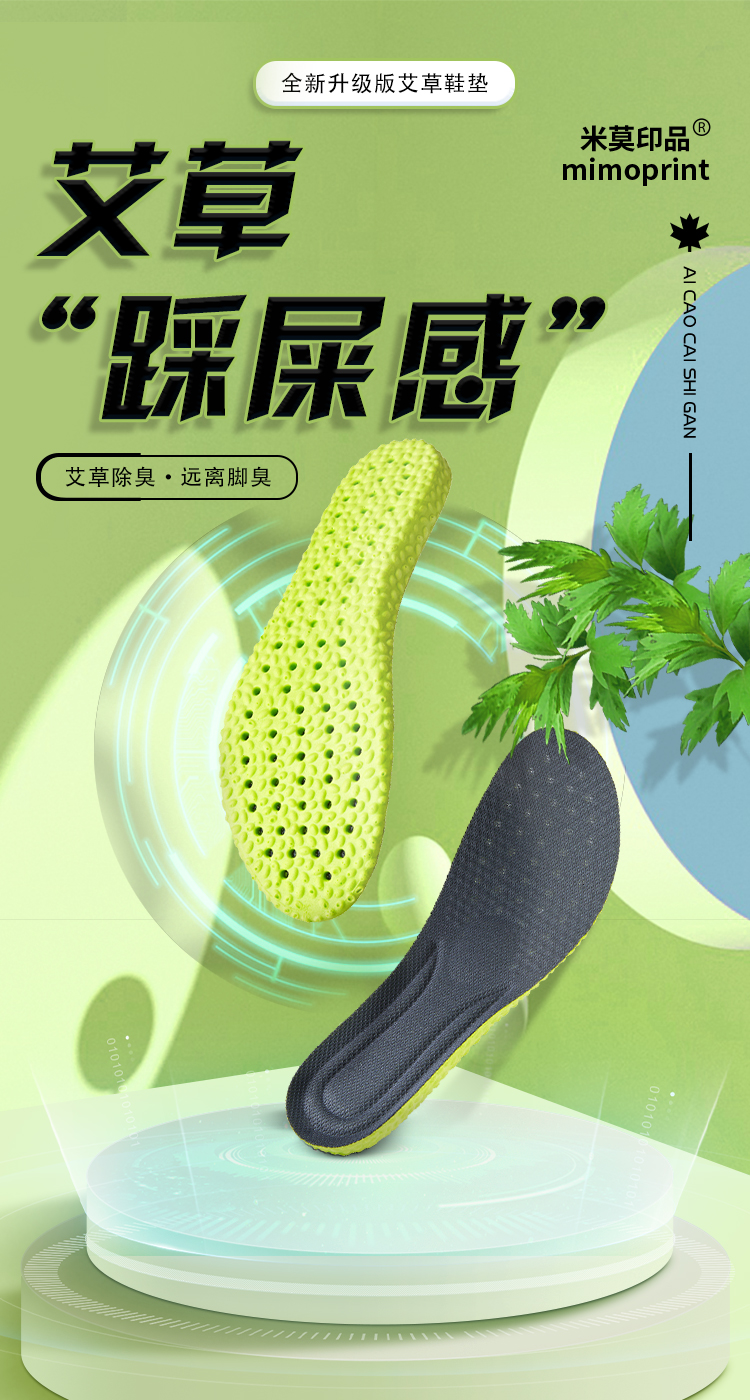 【除臭不冻脚】米莫印品高弹运动鞋垫/恒温鞋垫 艾草除臭睬屎感舒适减震 透气网眼清爽不闷脚 吸汗透气男女同款鞋垫