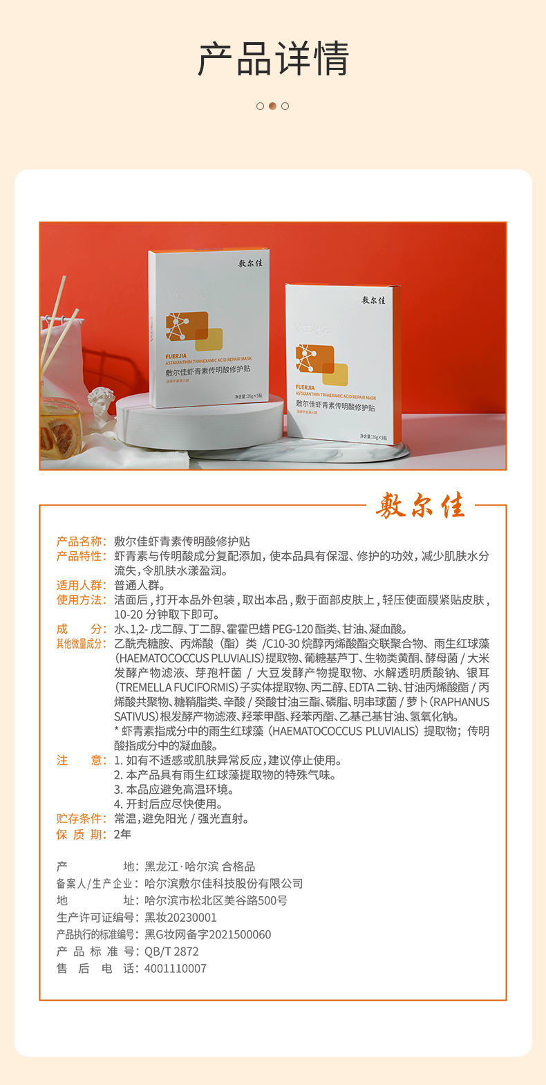 敷尔佳虾青素传明酸修护贴