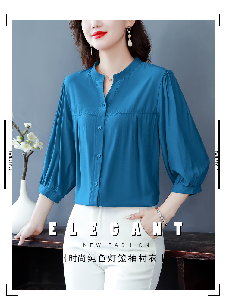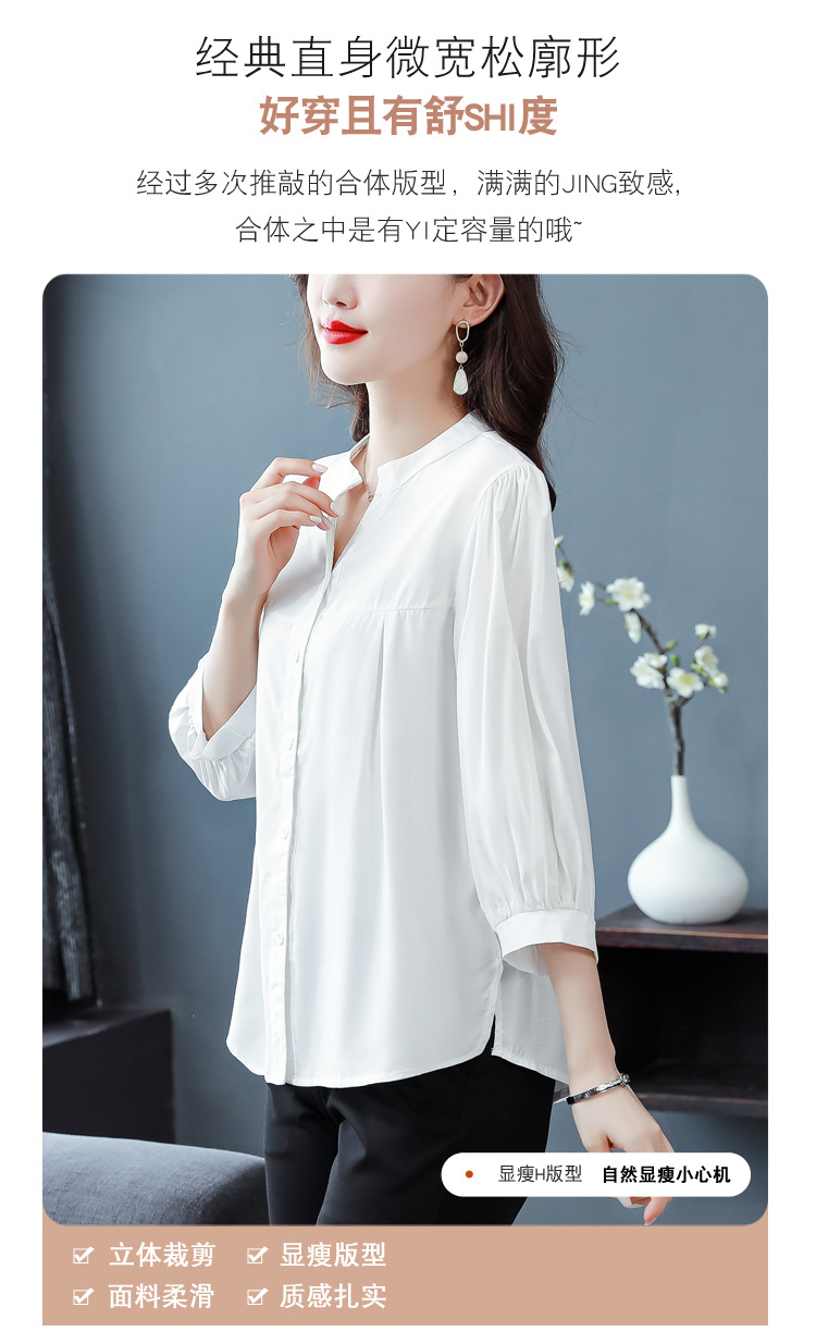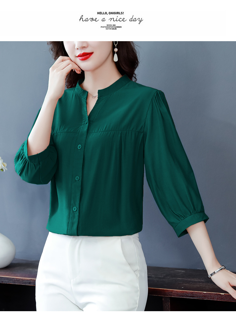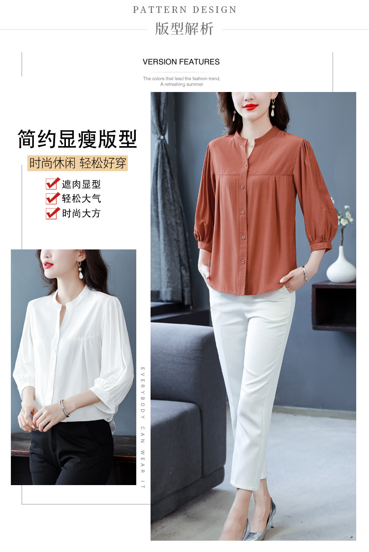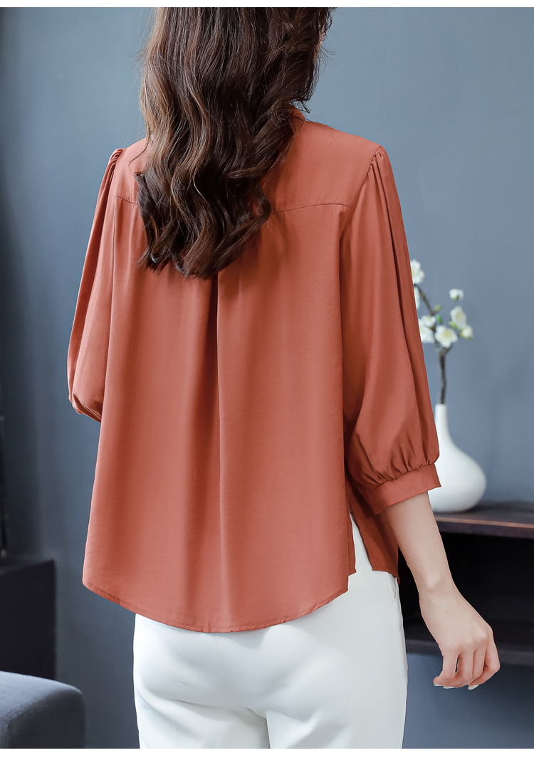 新款漂亮时尚中袖雪纺衫气质t恤小衫纯色修身衬衣小衫KQL-B24N2285