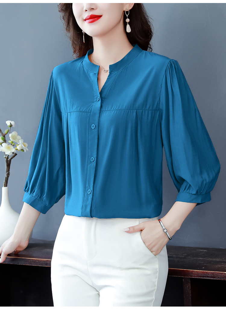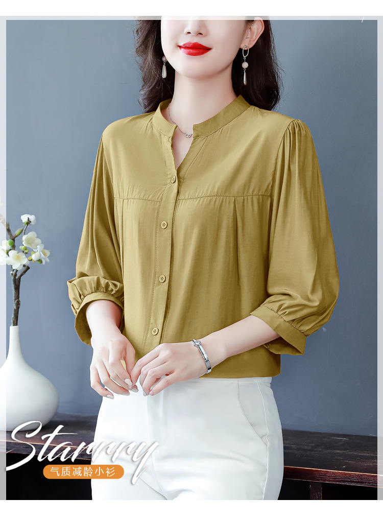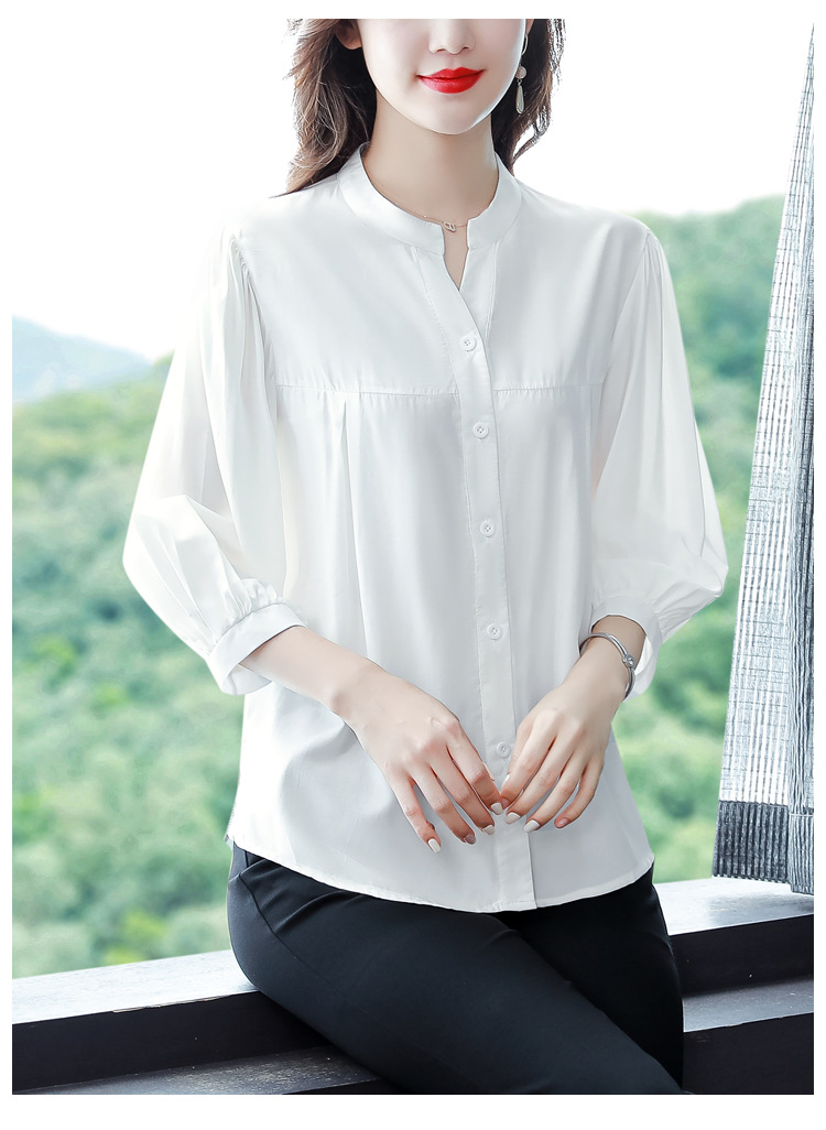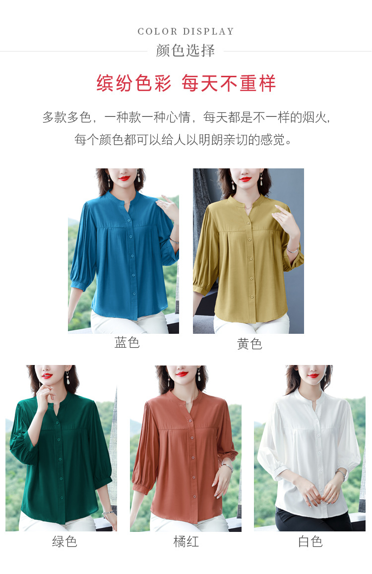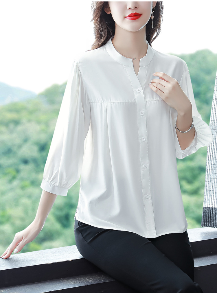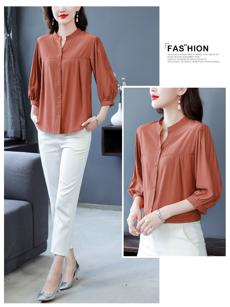 新款漂亮时尚中袖雪纺衫气质t恤小衫纯色修身衬衣小衫KQL-B24N2285