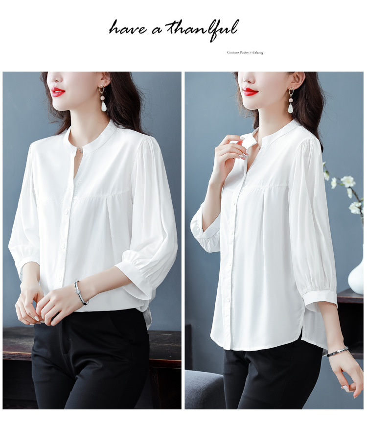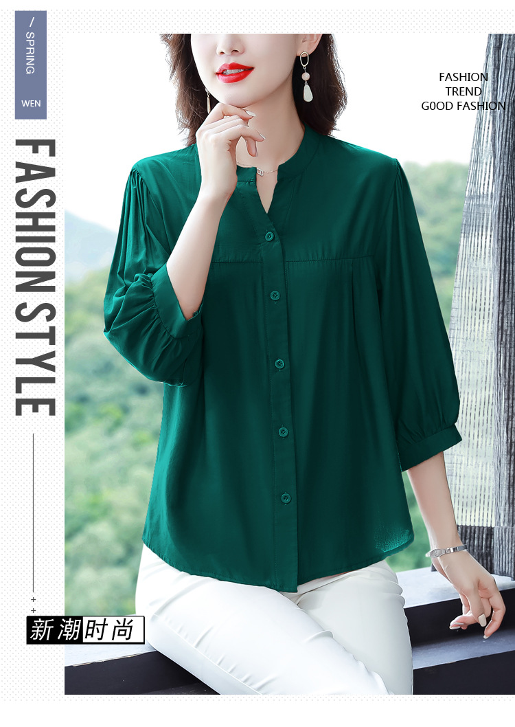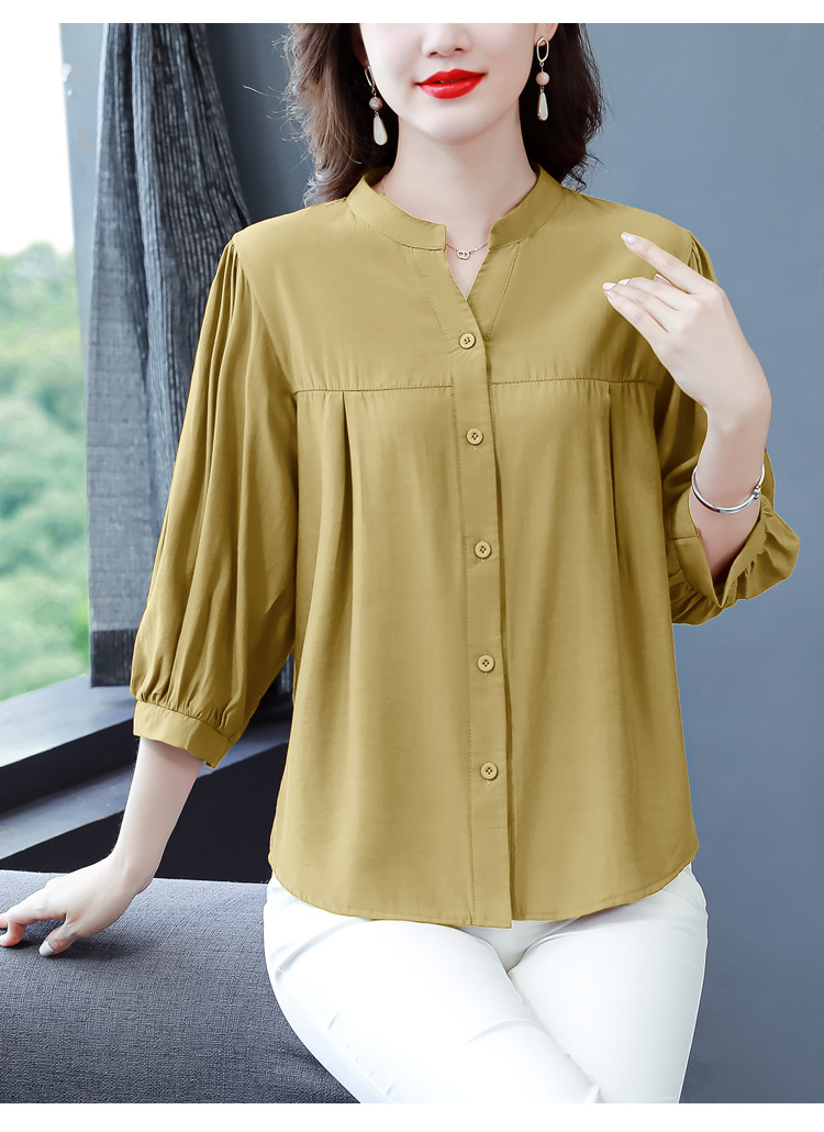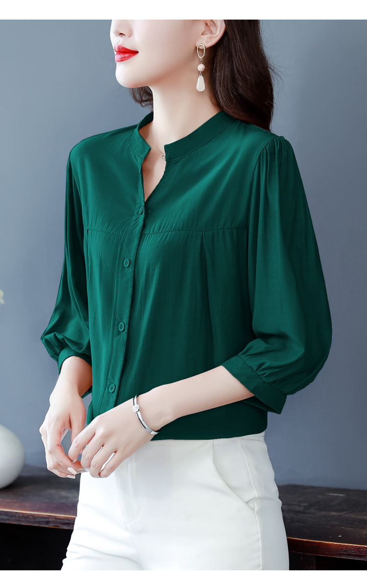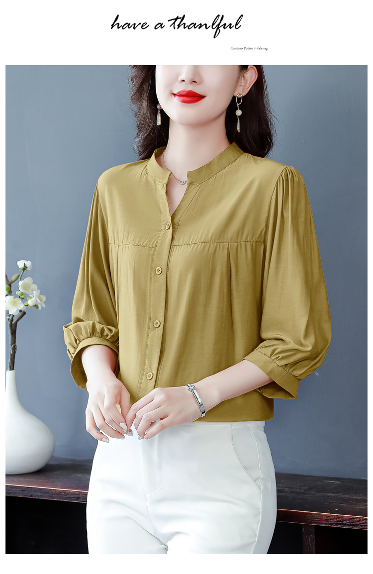 新款漂亮时尚中袖雪纺衫气质t恤小衫纯色修身衬衣小衫KQL-B24N2285