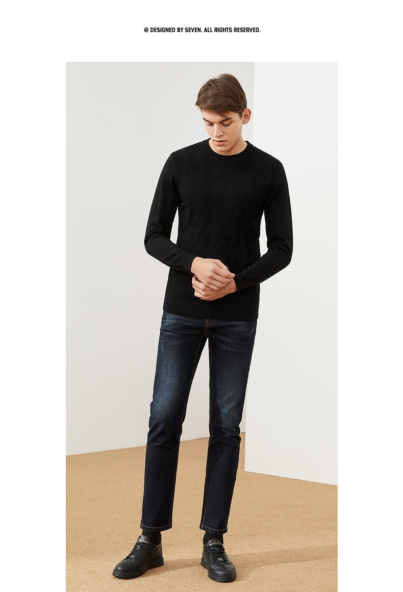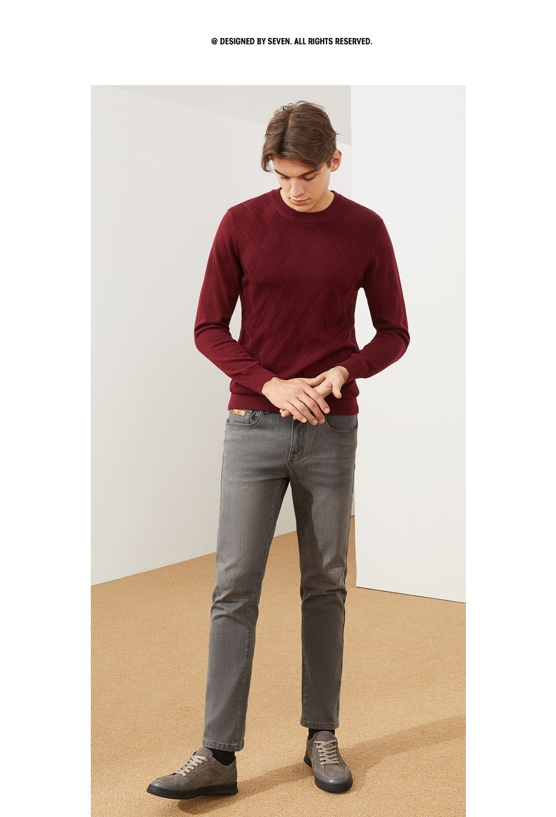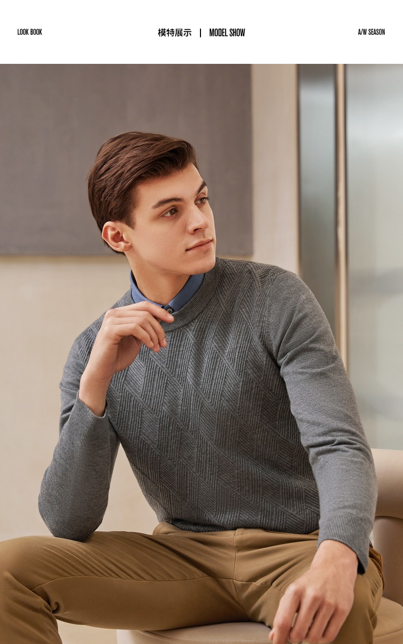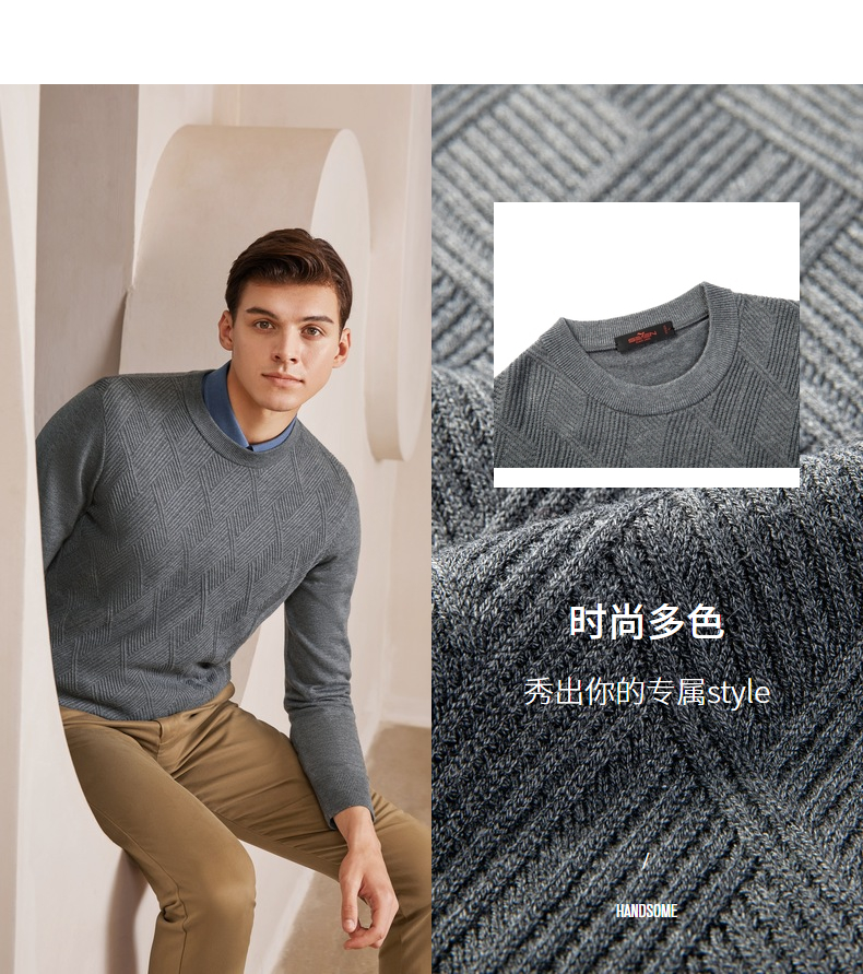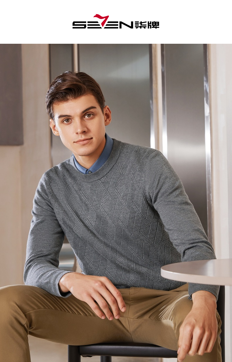 【特价】柒牌男士毛衫长袖秋冬新款商务休闲青年薄打底毛衣套头针织衫多色 121Y70410
