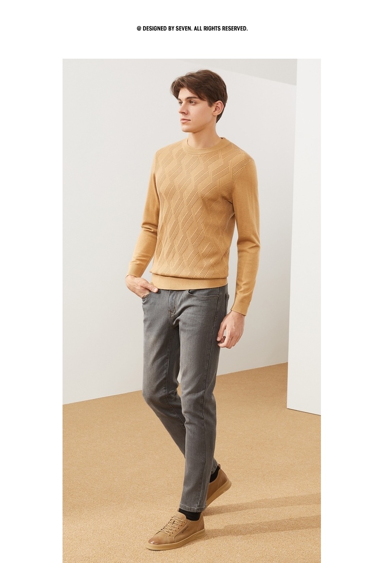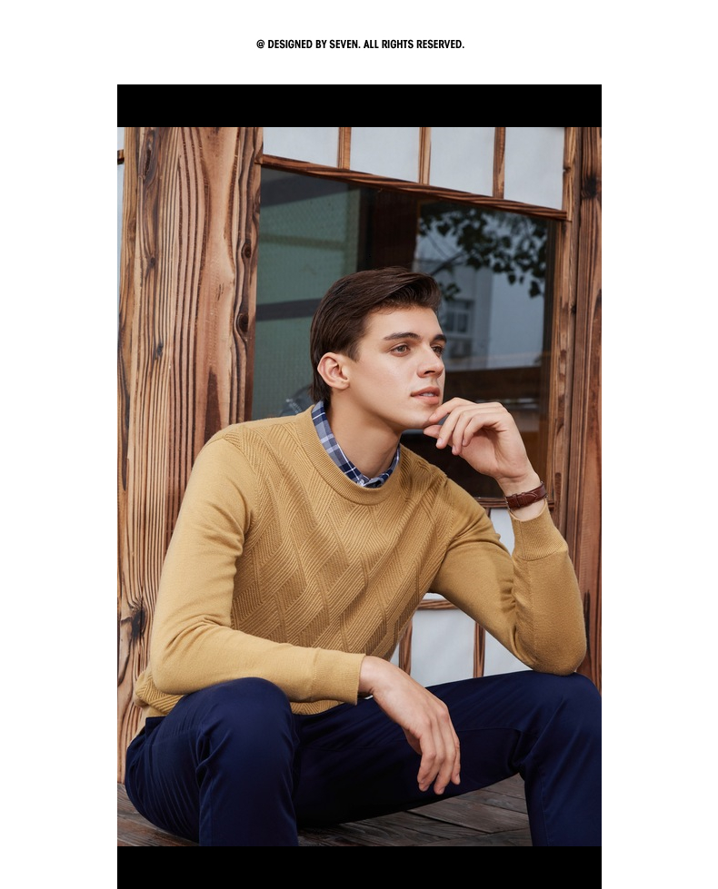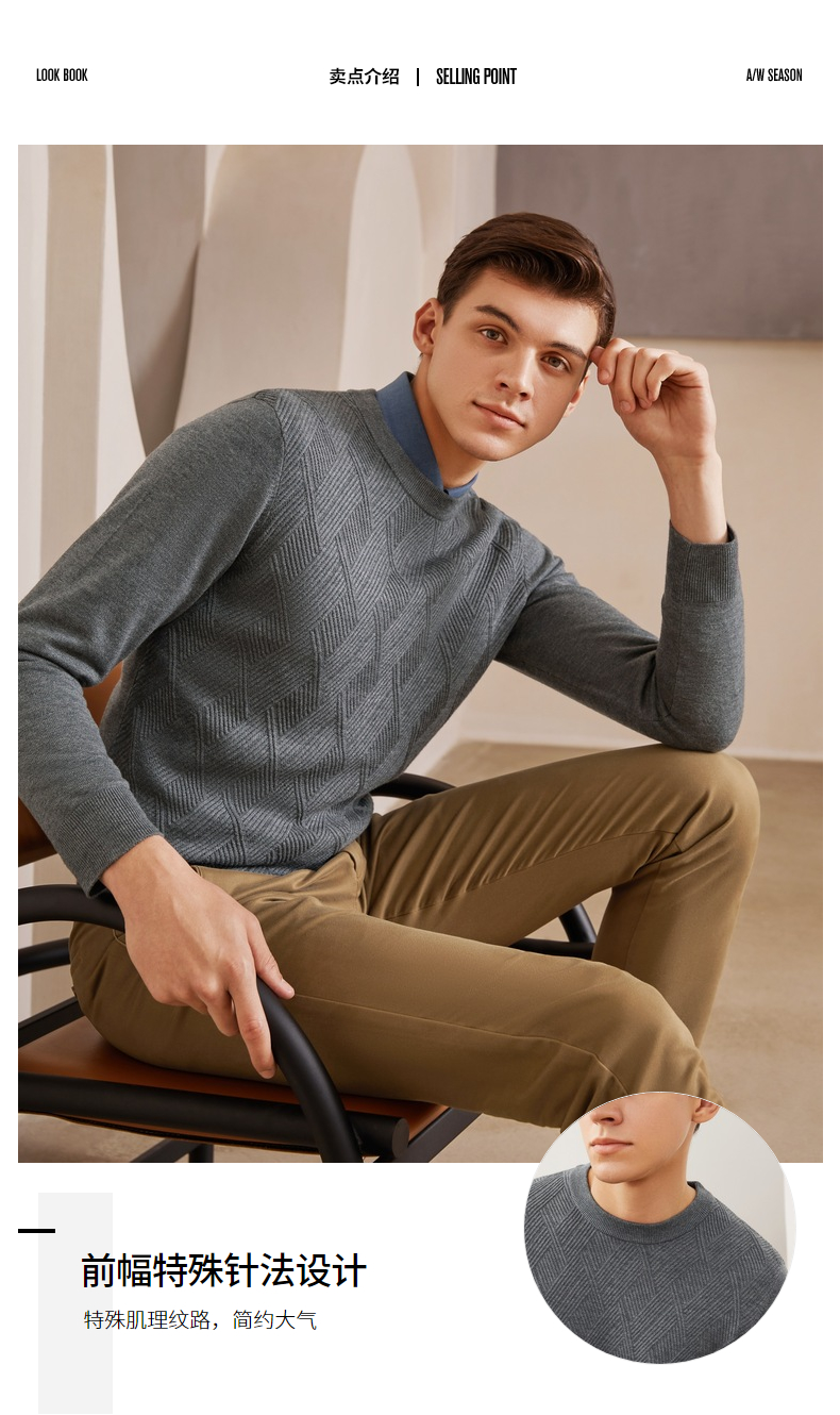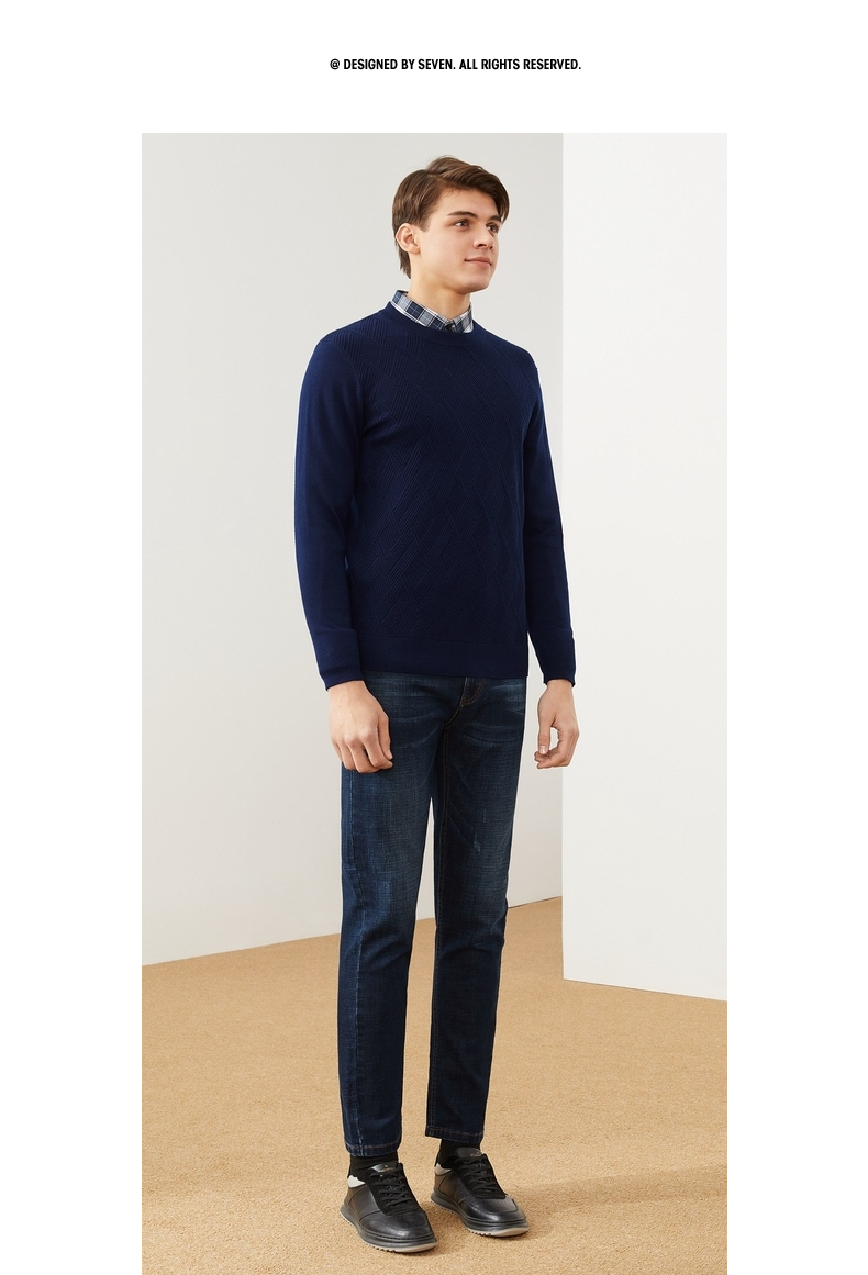 【特价】柒牌男士毛衫长袖秋冬新款商务休闲青年薄打底毛衣套头针织衫多色 121Y70410