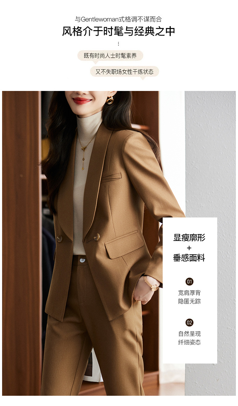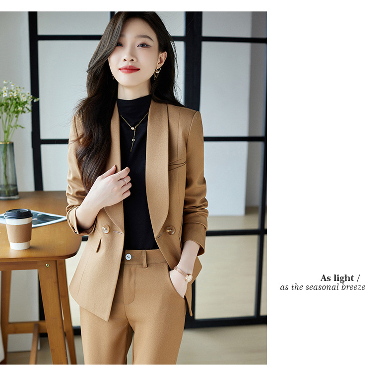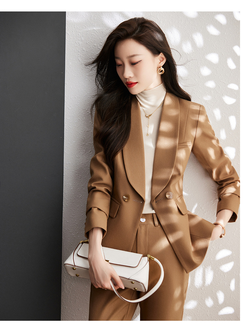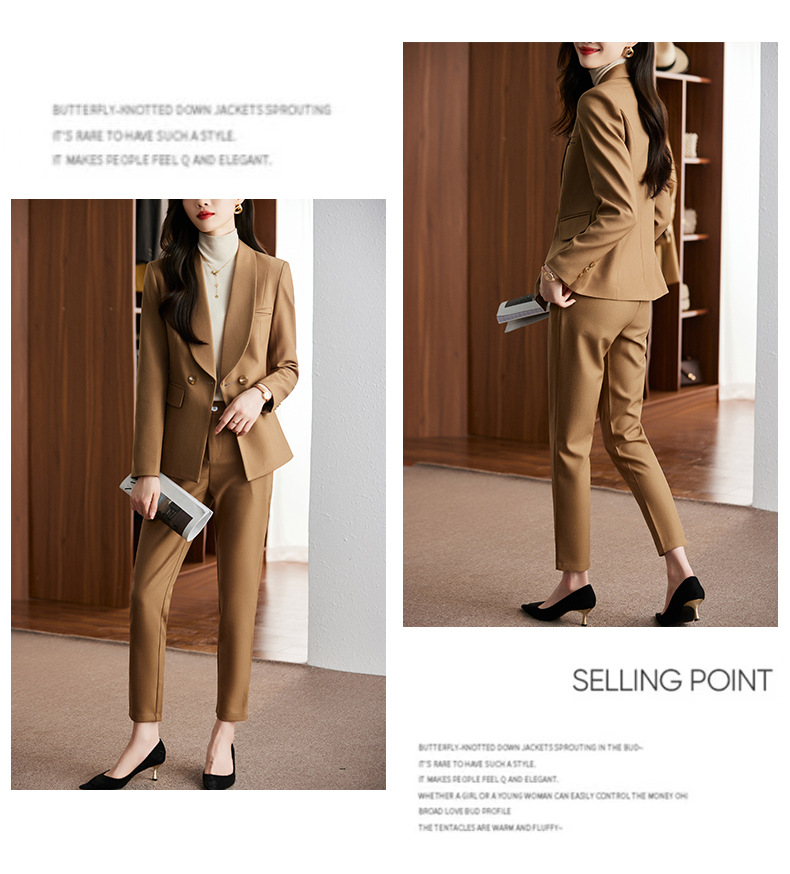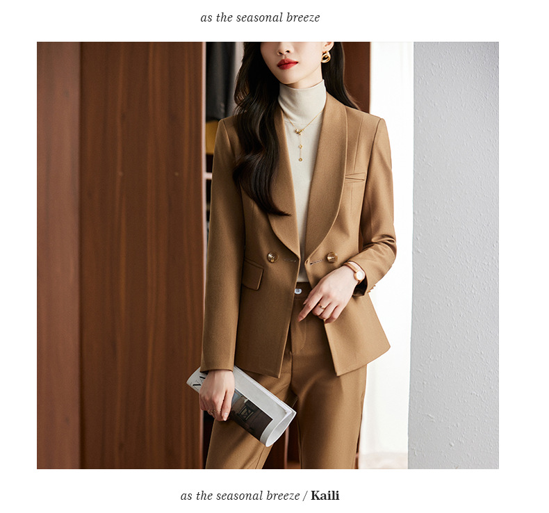 秋冬季新款修身时尚潮,卡其色职业装西装外套女裤子两件套装 XZ8638