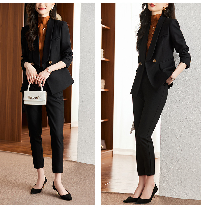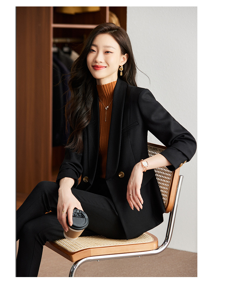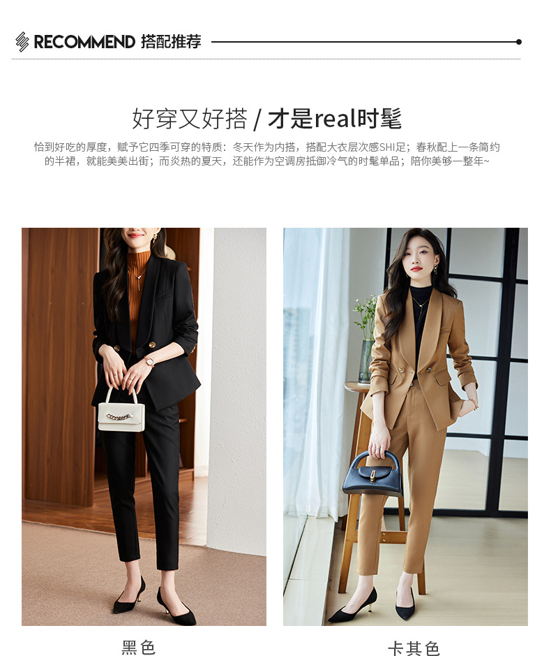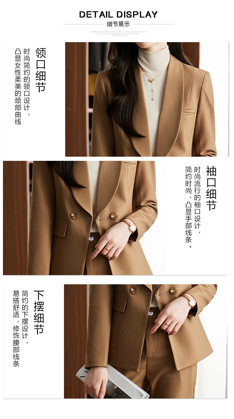 秋冬季新款修身时尚潮,卡其色职业装西装外套女裤子两件套装 XZ8638