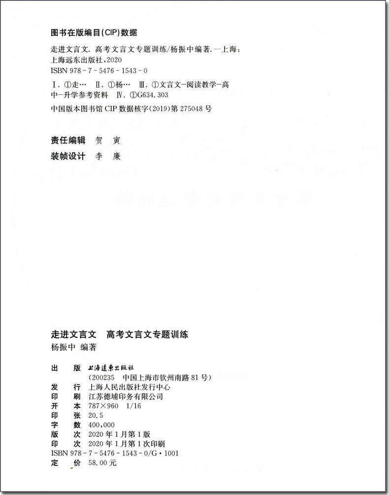 走进文言文 高考文言文专题训练 杨振中 编著 上海远东出版社 高二高三学生适用 高中语文教材教辅国学古典文学训练上海远东出版社