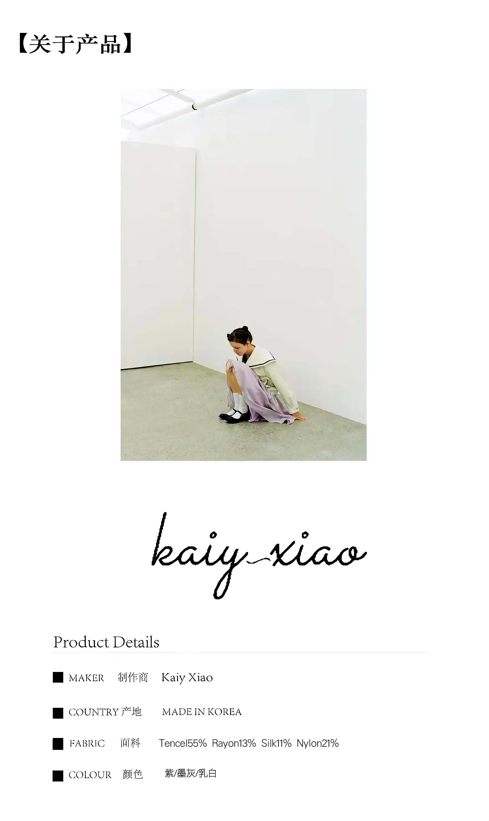 Kaiy Xiao 天丝手工缝线半裙 紫/黑灰/乳白