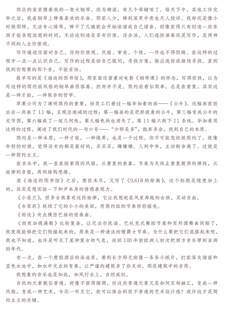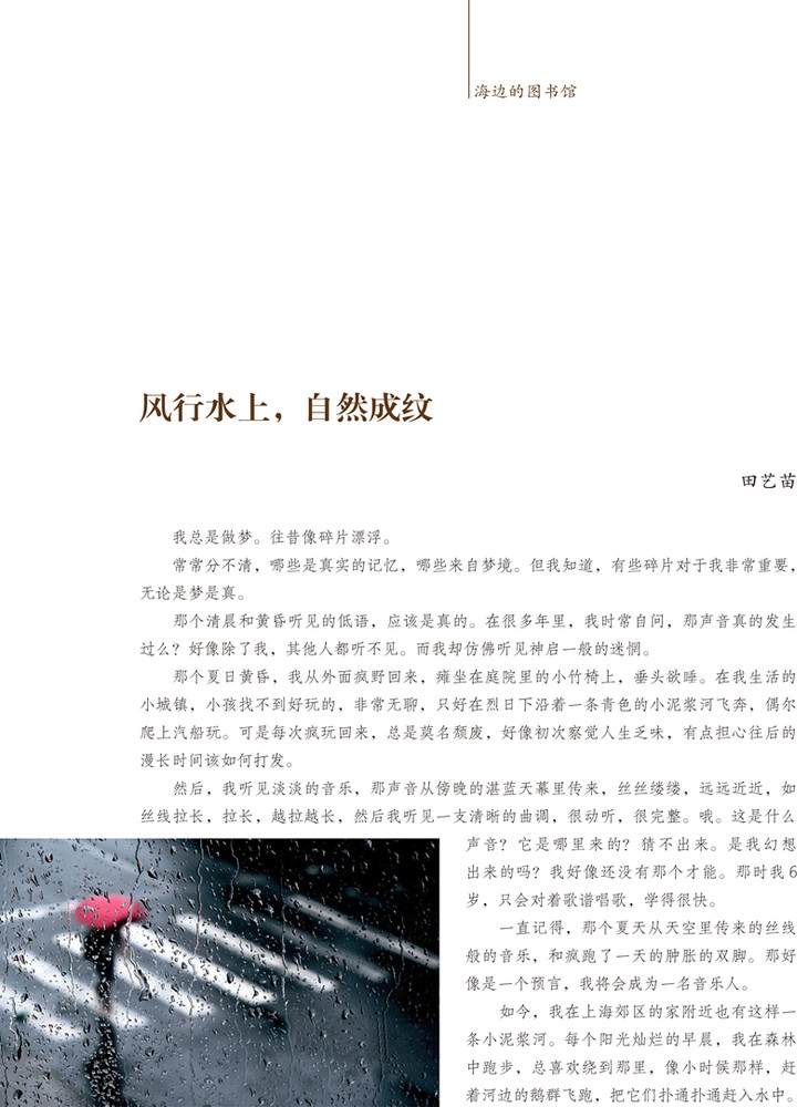 本书精选了上海音乐学院作曲系副教授田艺苗新近创作的钢琴小品。这里记录了冬季大海的气息,风里的音乐,散落在海边的小快板脚步,雨夜加德满都的夜景等6首清新淡雅,简易又富有效果的钢琴作品,书中所附音响由田艺苗本人演奏。
