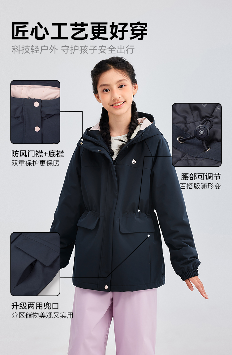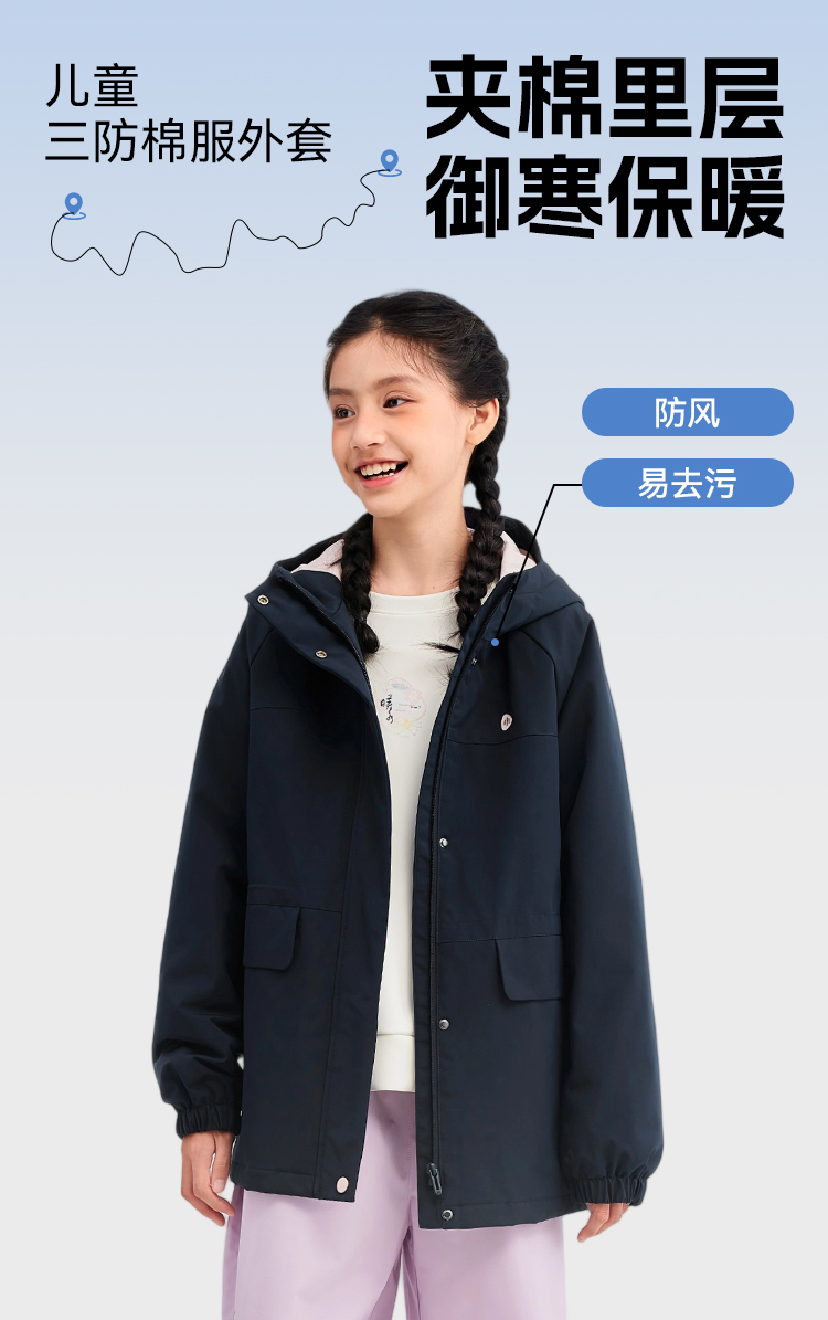 水孩儿童装棉服女童2025冬季新品三防加厚外套女大童保暖棉袄