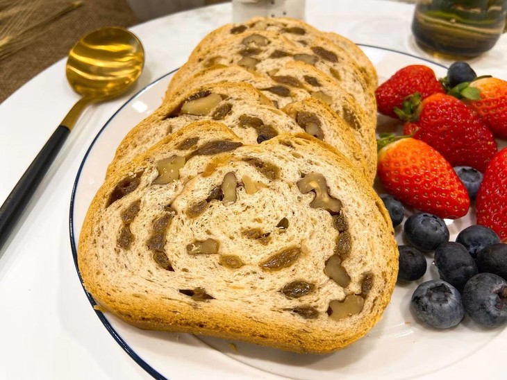 产品配料:石磨黑小麦全麦粉、 核桃仁、葡萄干、鲜鸡蛋、白砂糖、葵花籽油、黄油、食盐、啤酒花