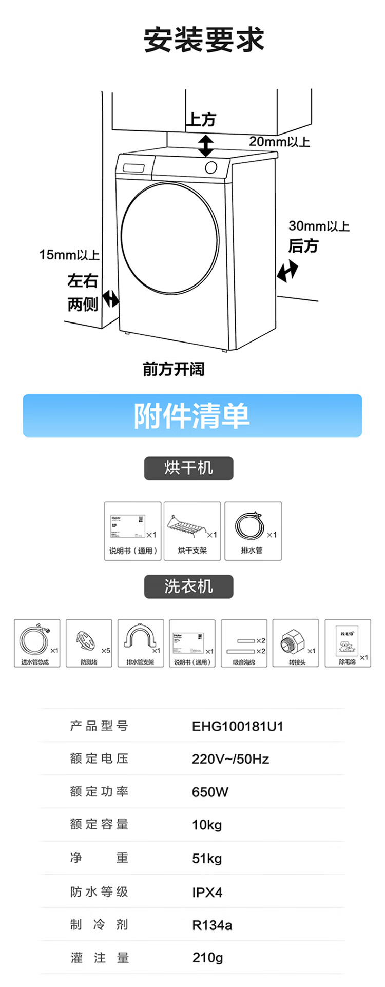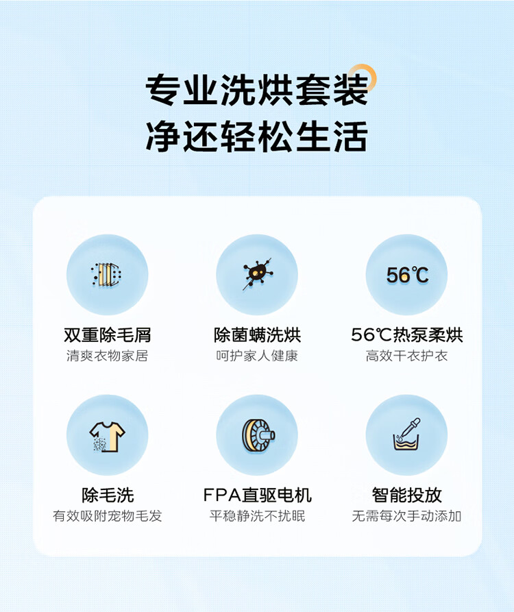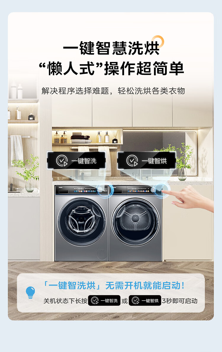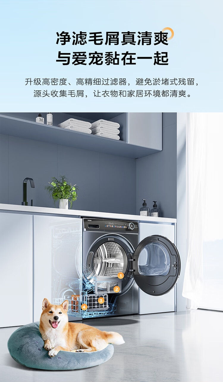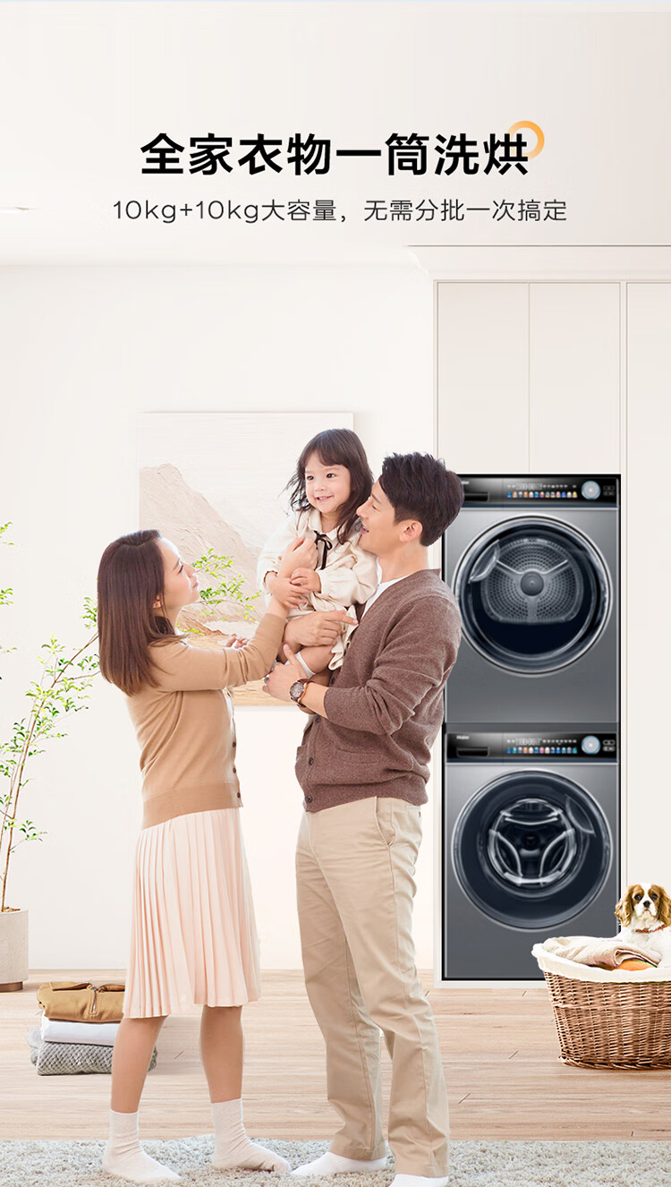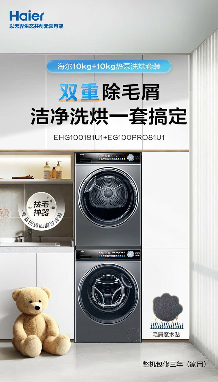 海尔Haier 10KG洗烘套装 滚筒洗衣机 空净热泵烘干机家用 双重除毛屑 EG100PRO81U+EHG100181U1