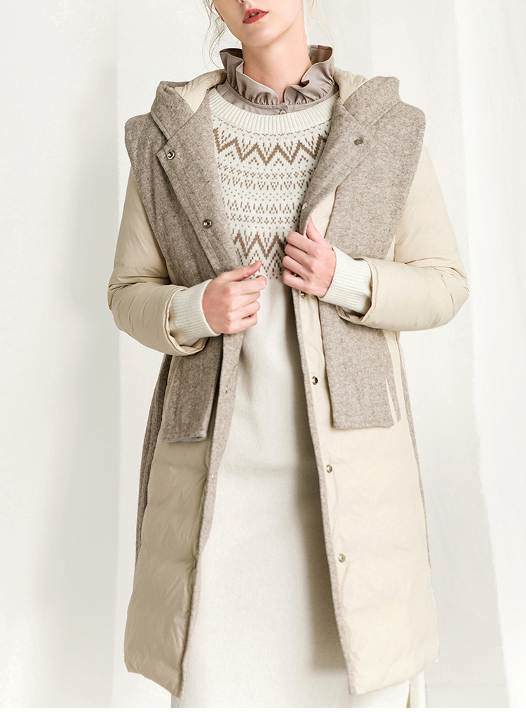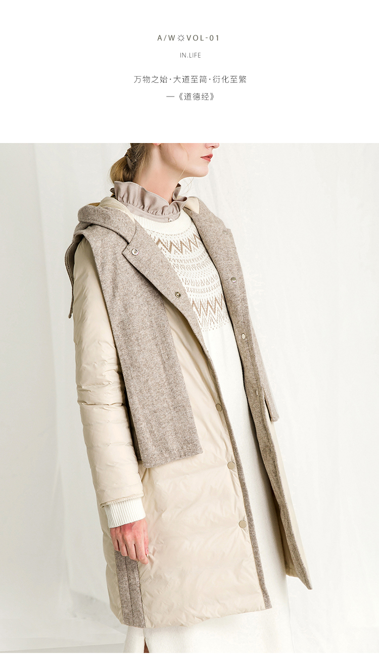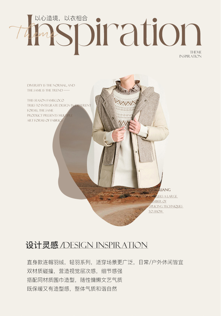 famecoco范可儿拼接羽绒服宽松休闲外套F218AL007