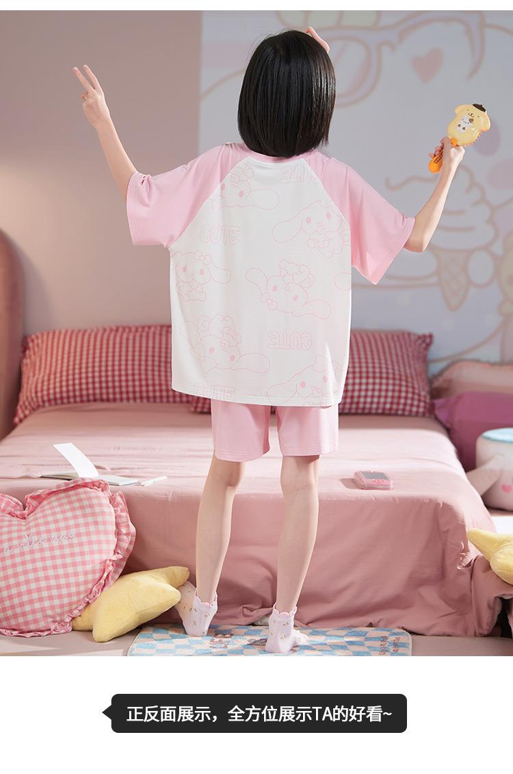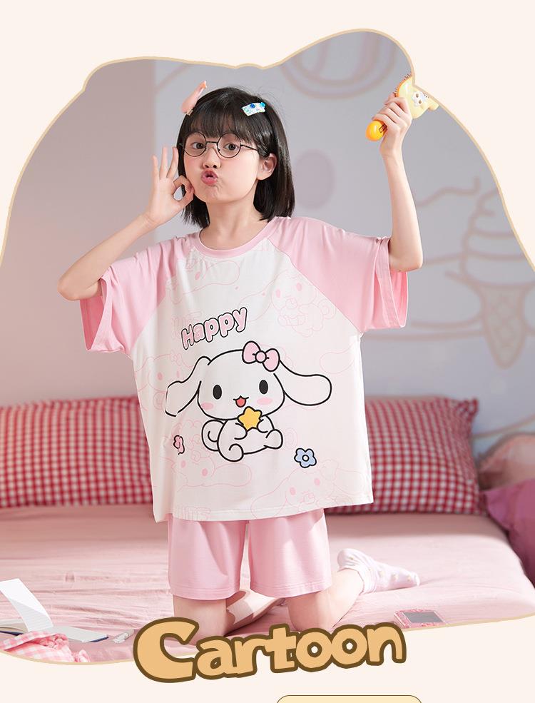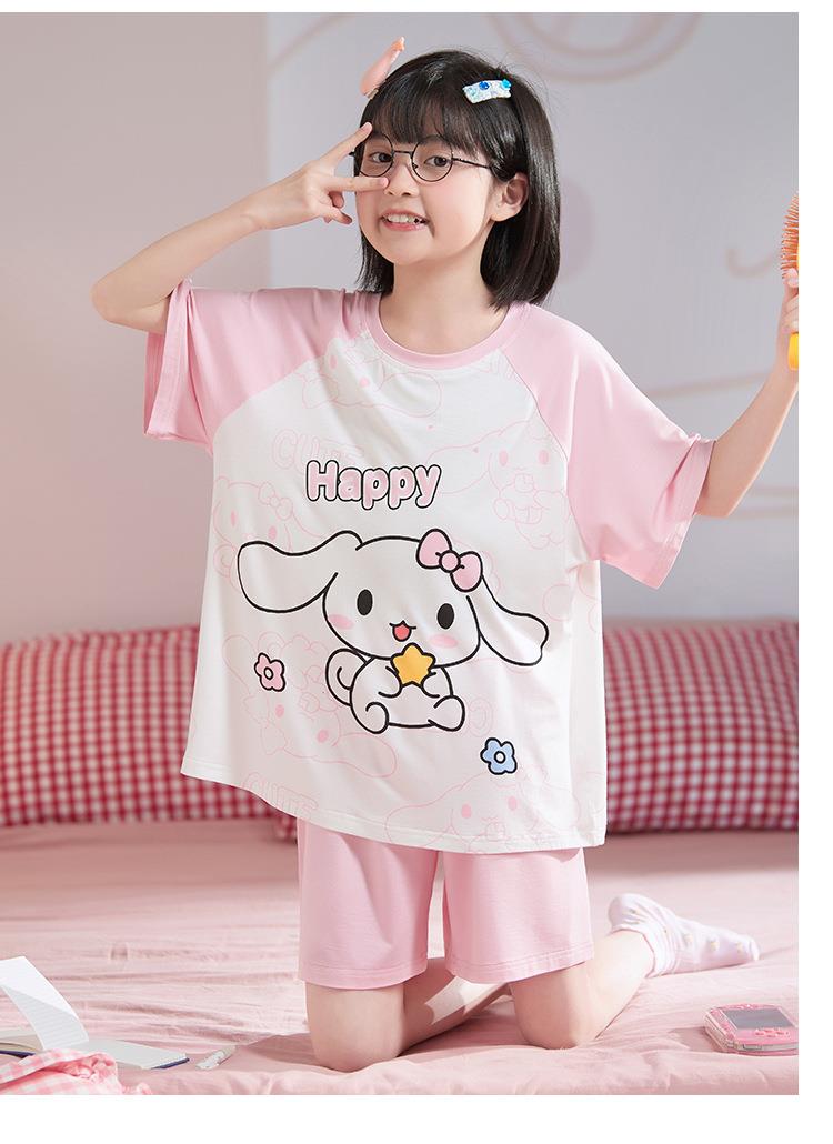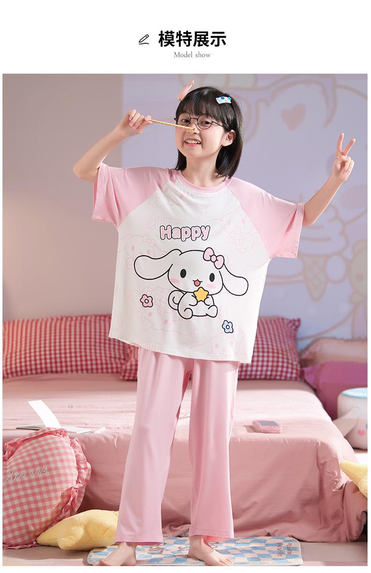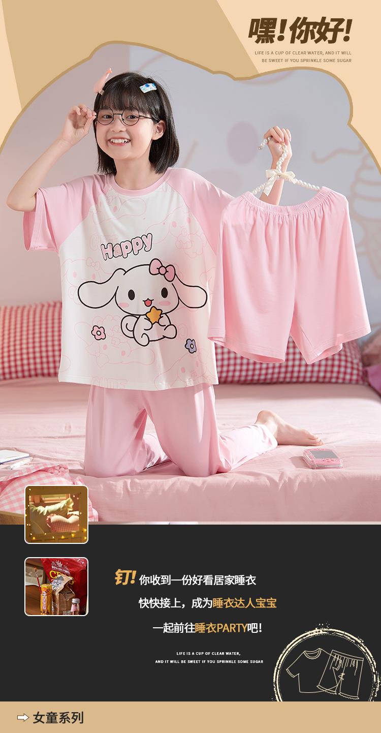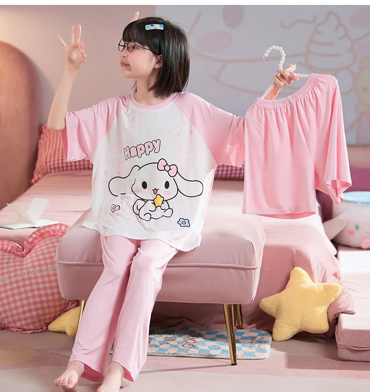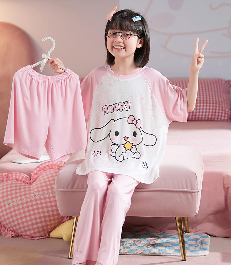 儿童莫代尔睡衣夏季女童短袖薄款三件套女孩中大童夏款家居服套装