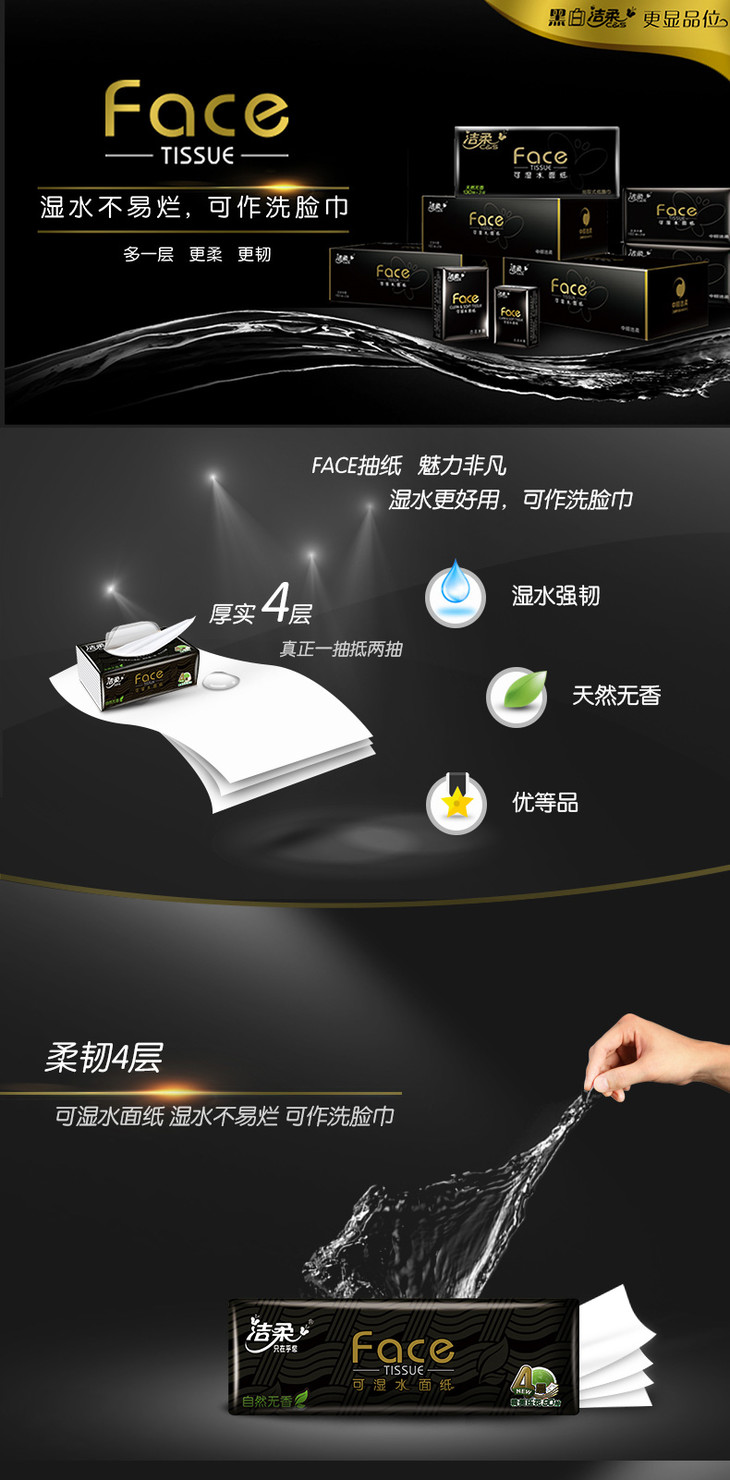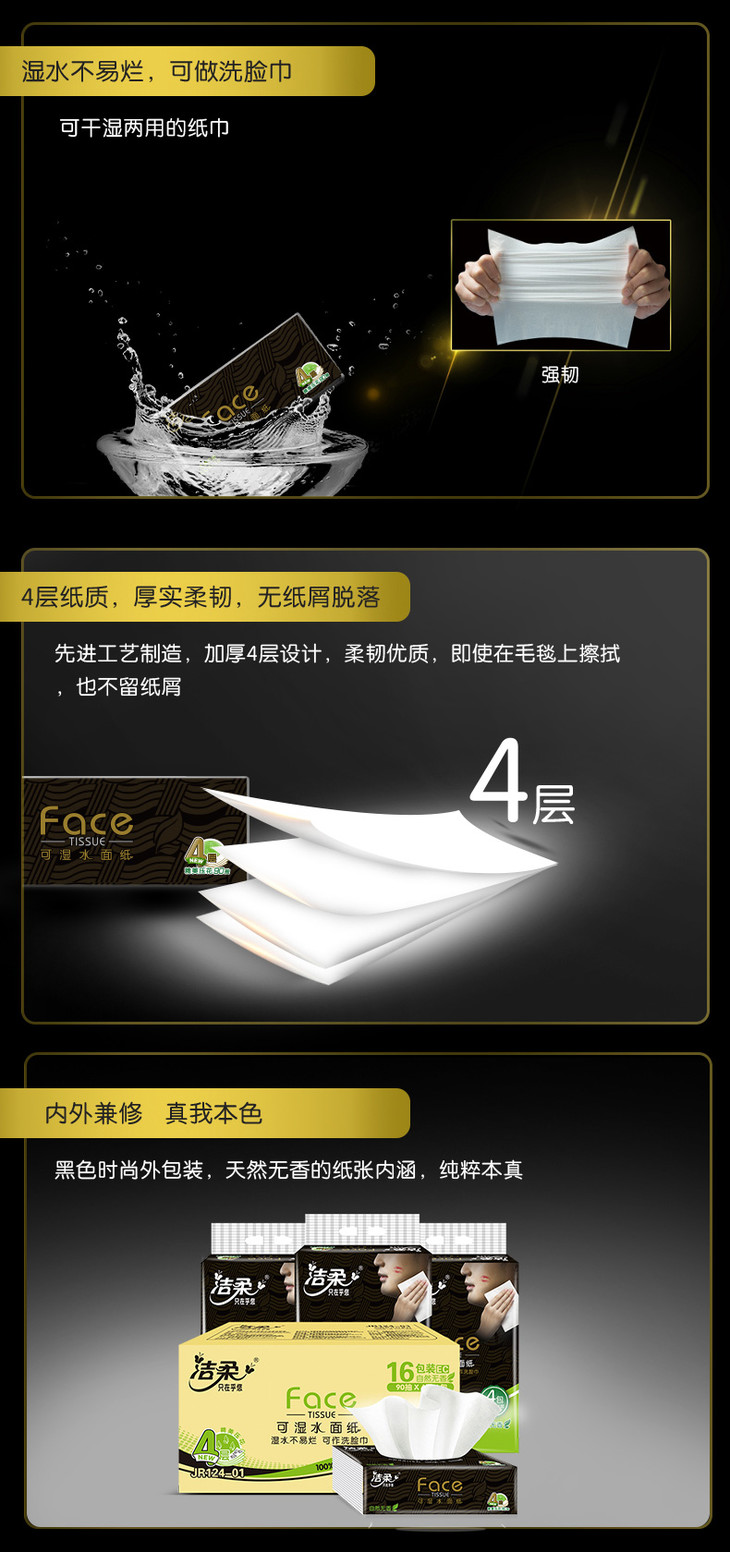 洁柔纸面巾(Face黑软抽)90抽4层(16包装)