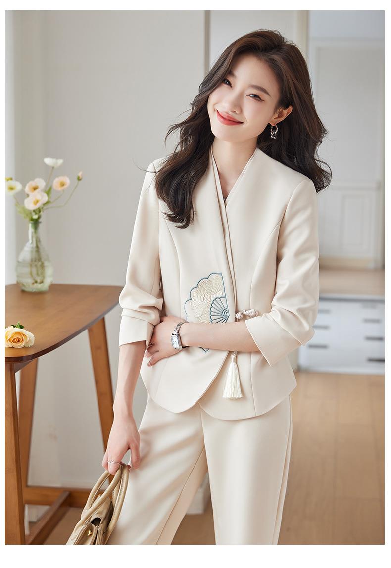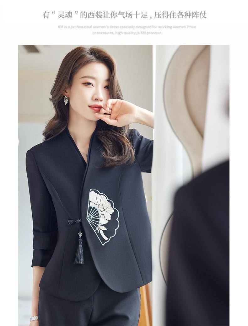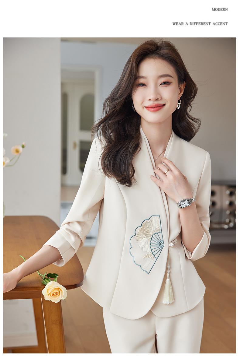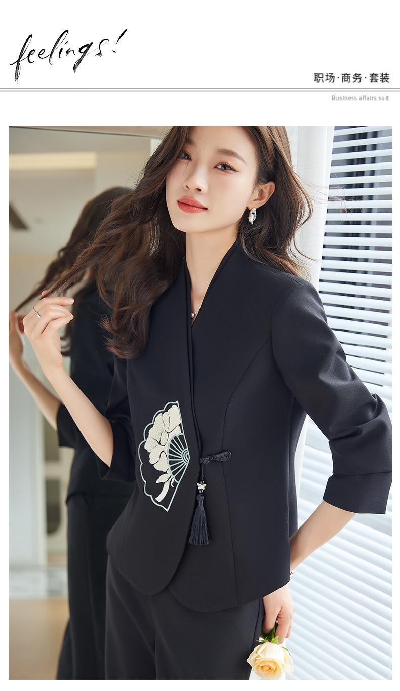 娜璐多 新中式外套+微叭裤两件套2023秋季新款设计感套装重工刺绣高级感