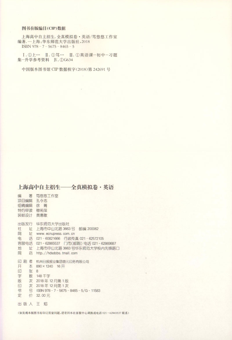 正版 上海高中自主招生 英语 全真模拟卷 名校自招试题 知识要点例题精讲名校真题详解习题巩固练习 初中生自主招生考试复习用书