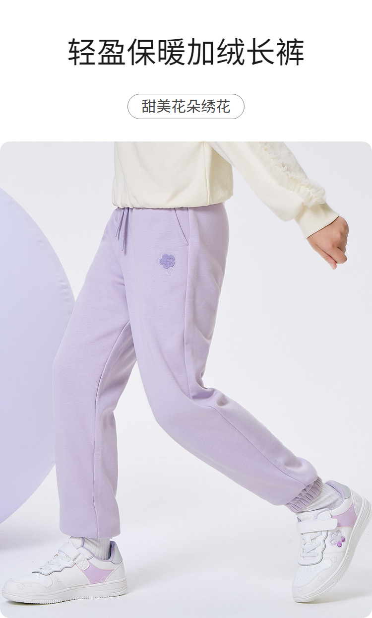 巴拉巴拉童装女童裤子冬装中大童加绒长裤保暖儿童运动花朵舒适潮