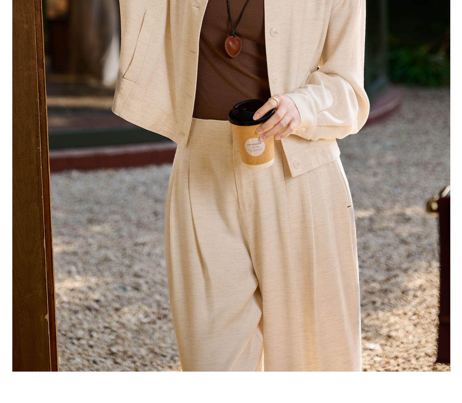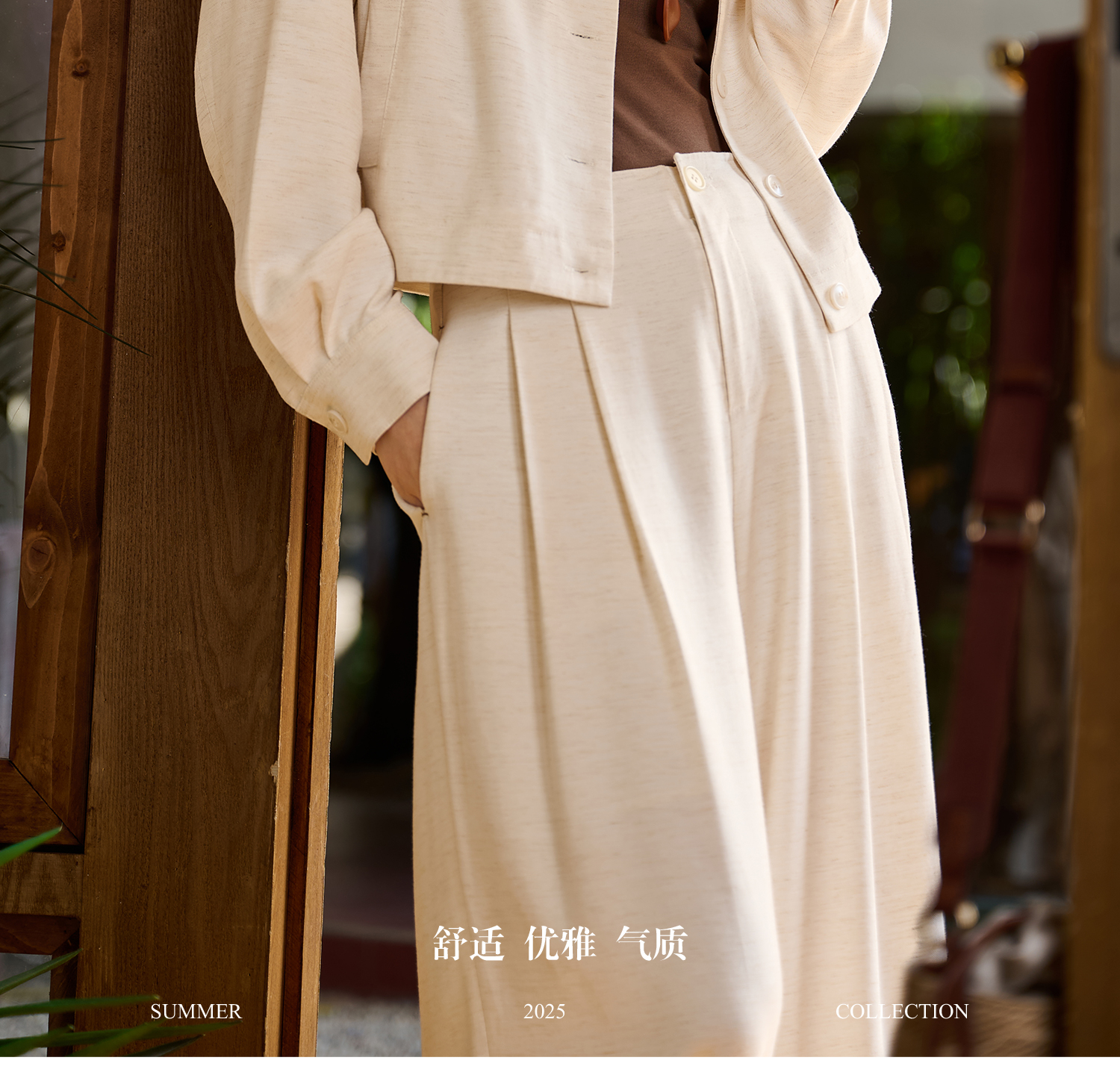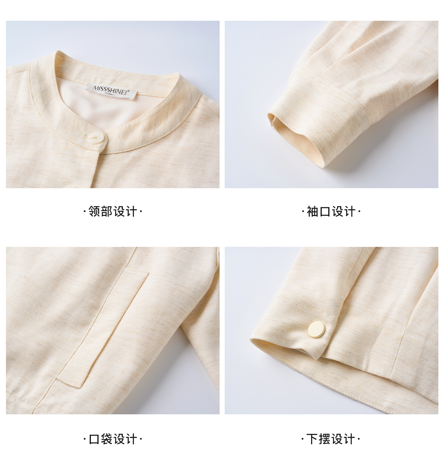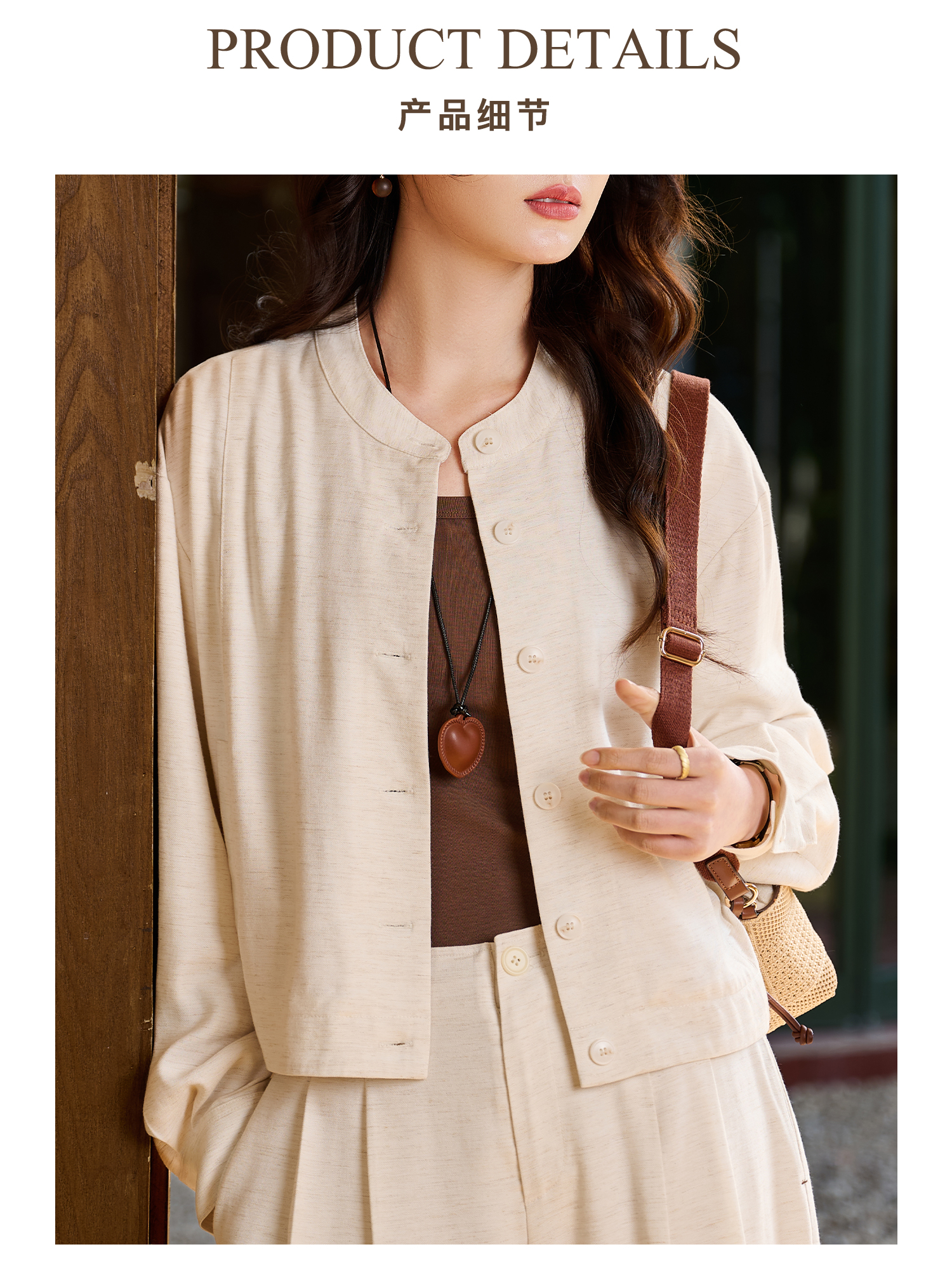 松弛感 “懒人高级外套” 呼吸感肌理亚麻混纺 米思阳2026春新款老钱风松弛感舒适亚麻混纺圆领单排扣短外套女5854
