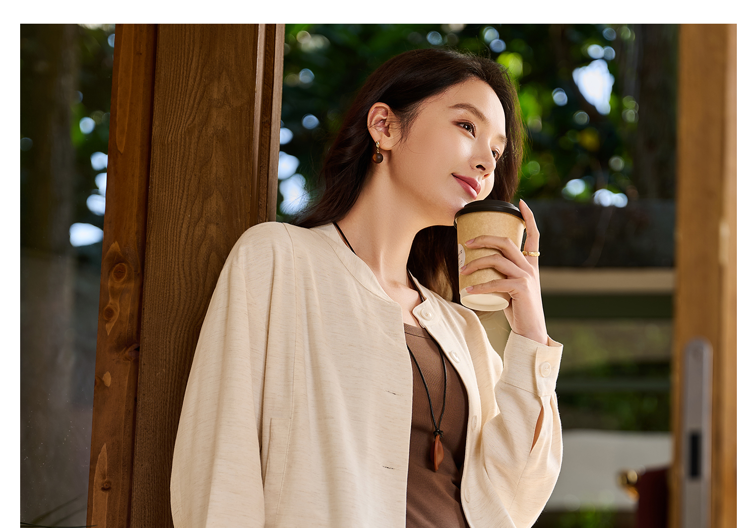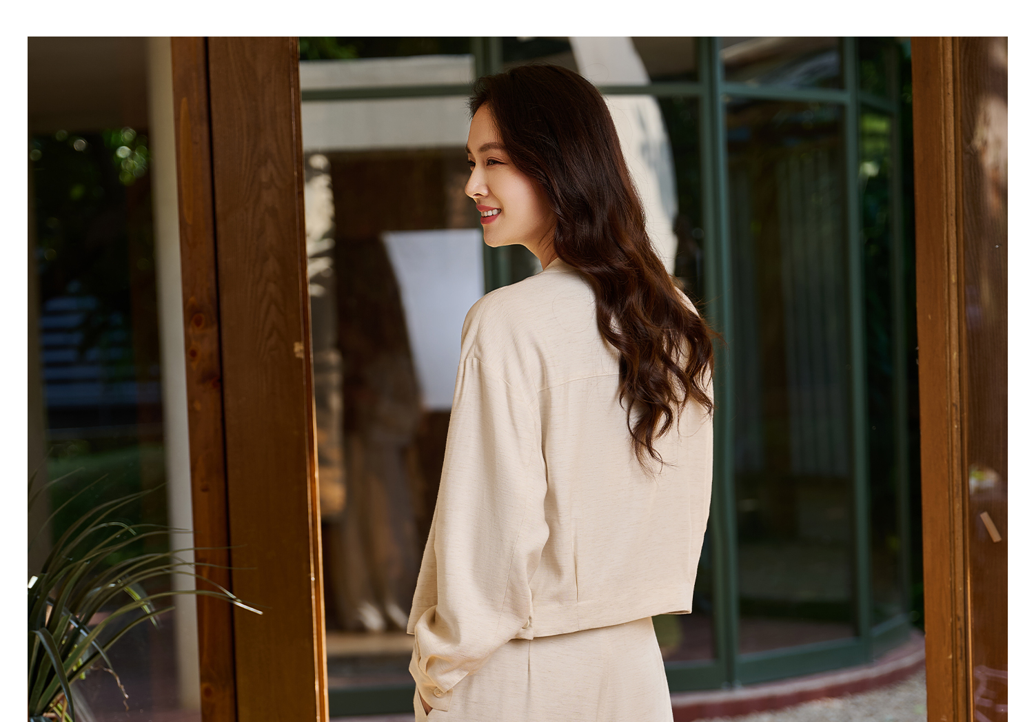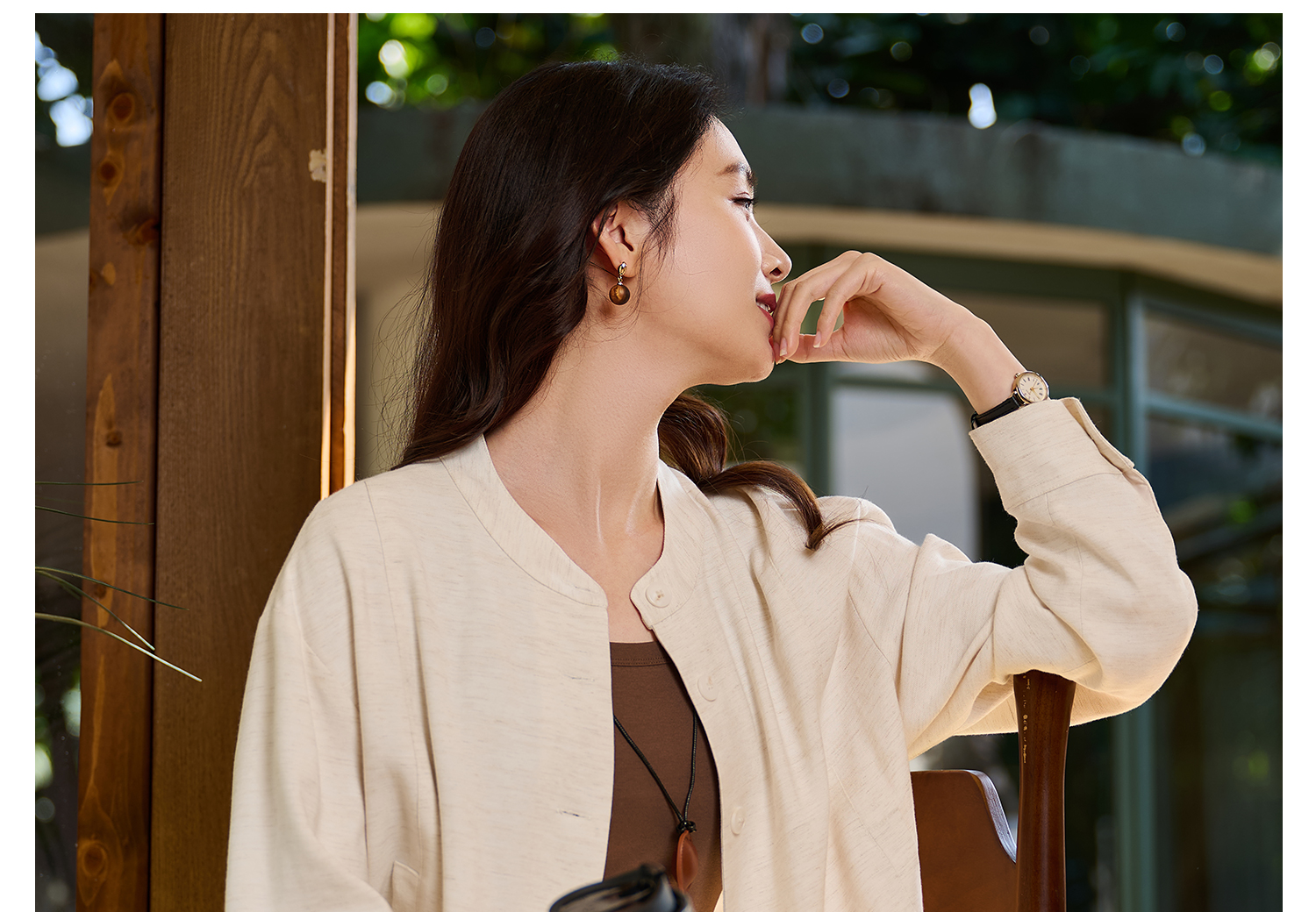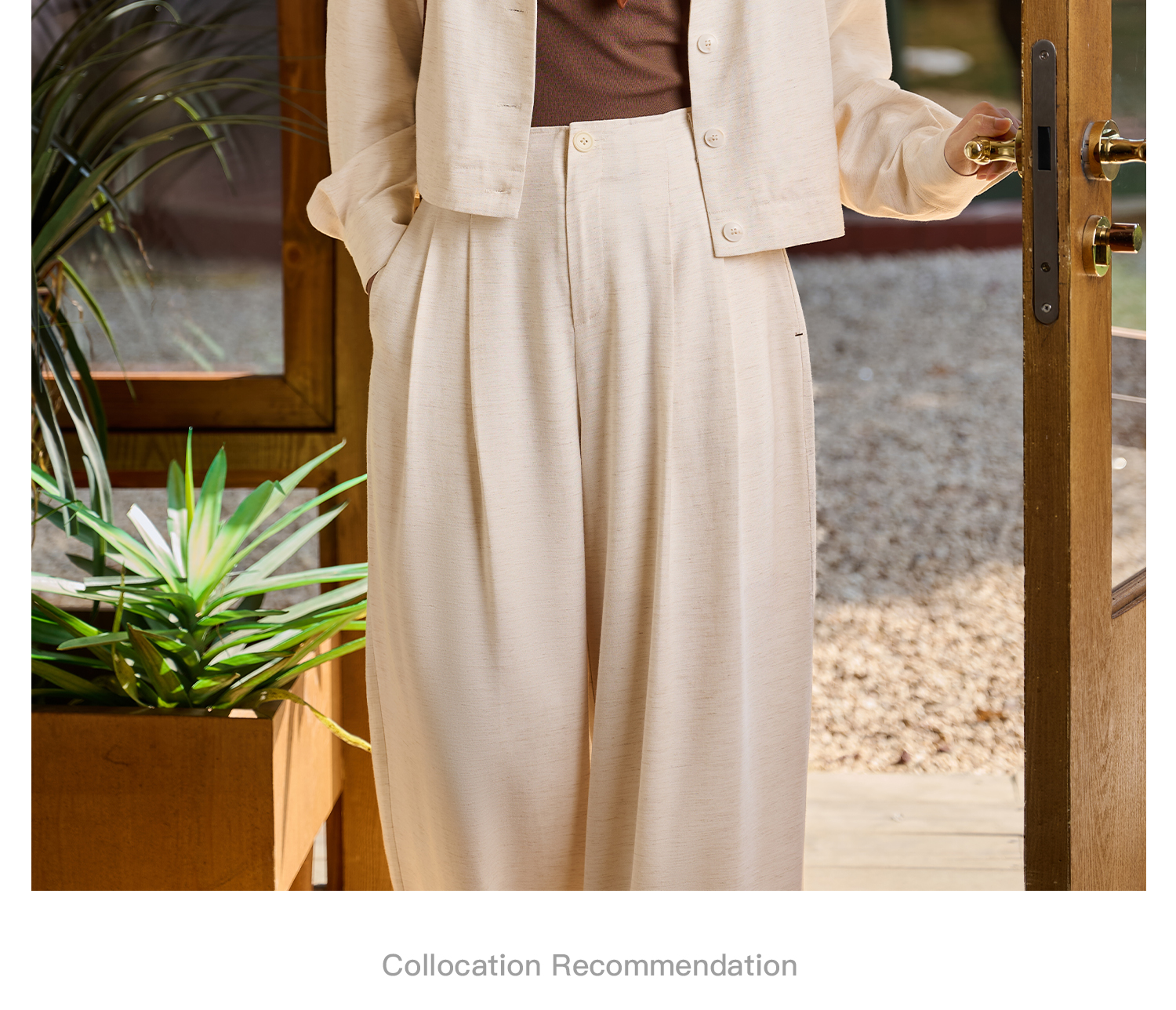 松弛感 “懒人高级外套” 呼吸感肌理亚麻混纺 米思阳2026春新款老钱风松弛感舒适亚麻混纺圆领单排扣短外套女5854