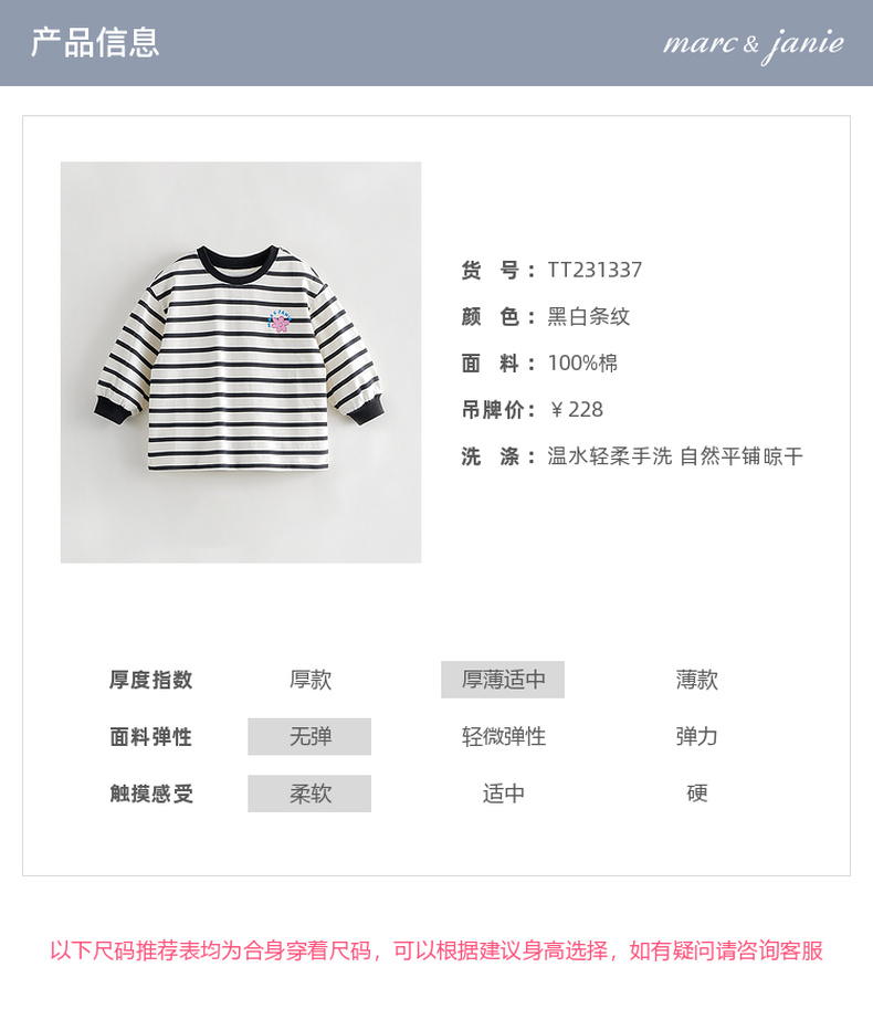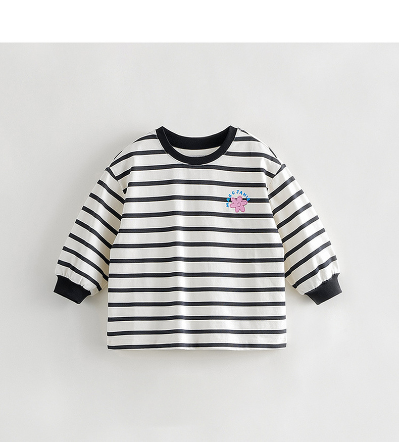马克珍妮秋装新款 女童全棉条纹长袖T恤 儿童上衣231337