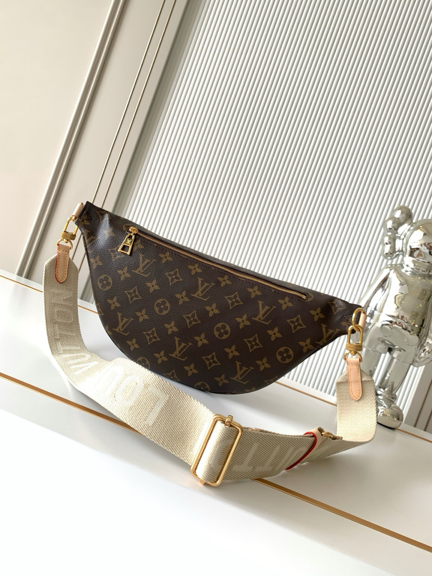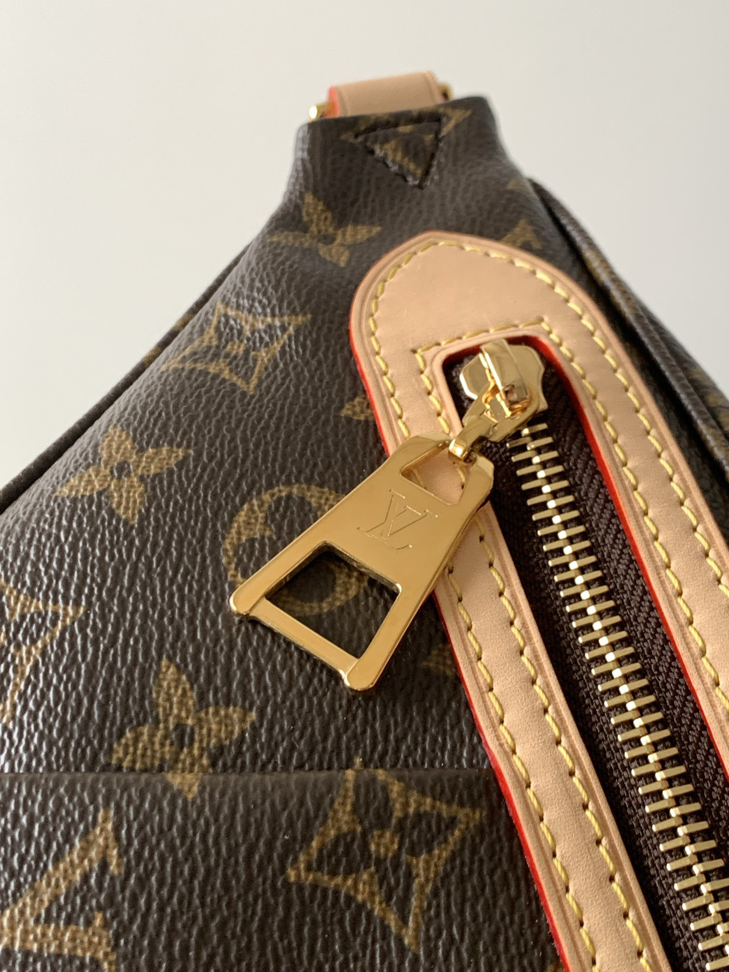 秋冬特惠💰1250 渠道级LV【全钢五金 MB163c01变码芯片】te级LV 全套包装 M46784老花 High Rise 腰包以柔软Monogram 涂层帆布塑造贴身构型,轻薄设计可置于外套内侧。牛皮革塑造可拆卸名牌,系上织物肩带,尽释动感风范。