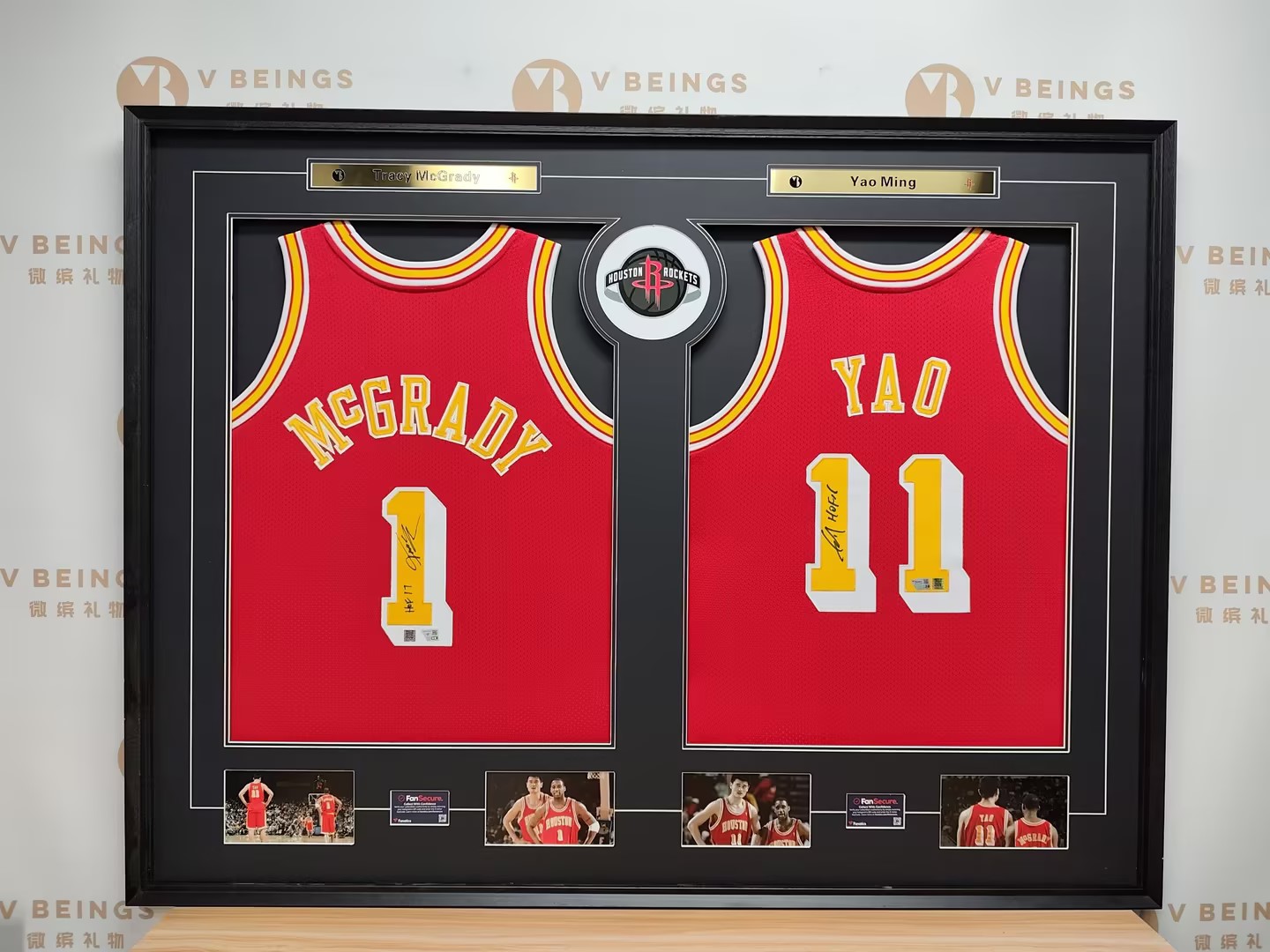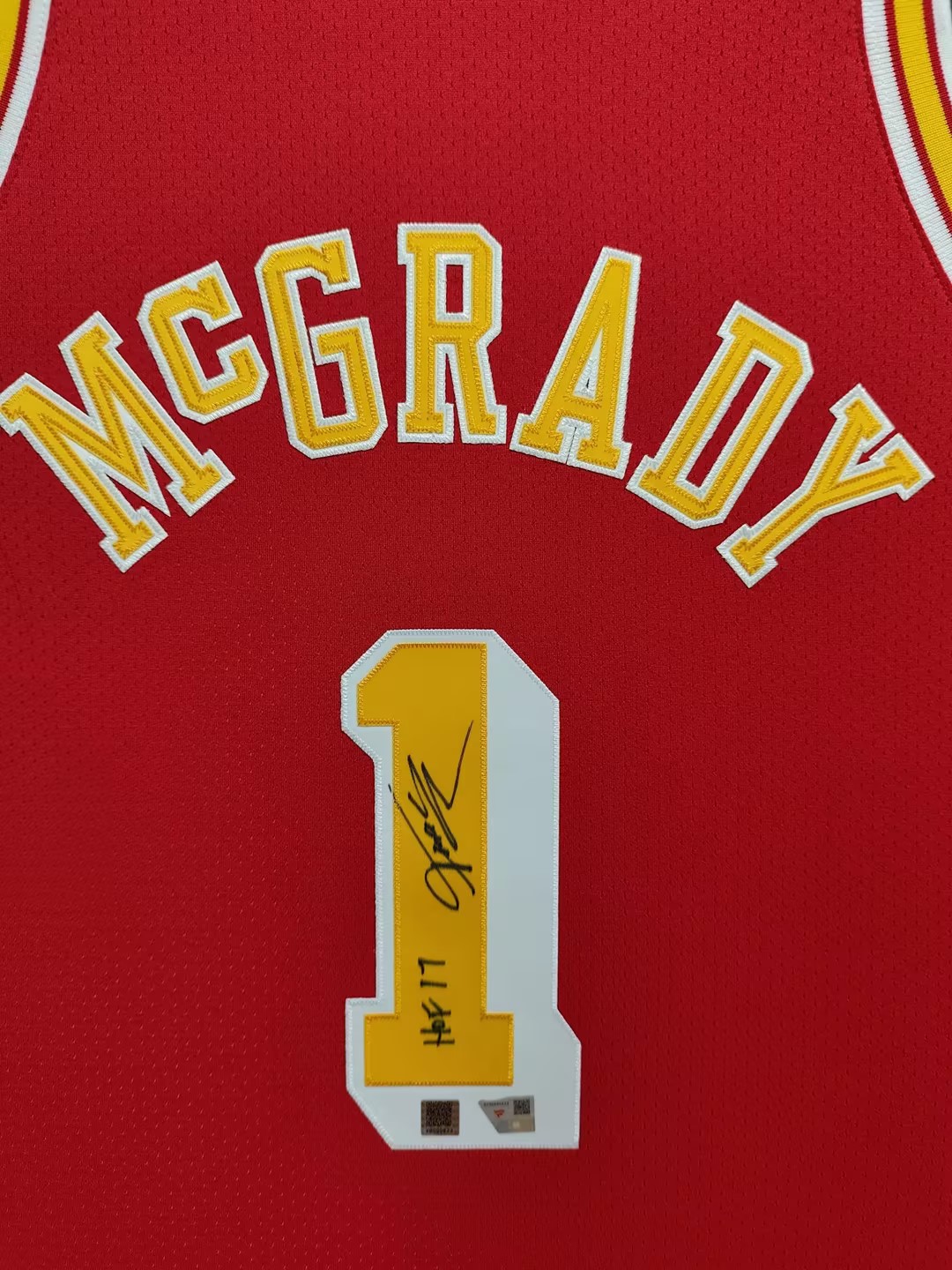 收藏系列 麦迪&姚明 火箭队1号&11号 红色球员版 亲笔签名球衣