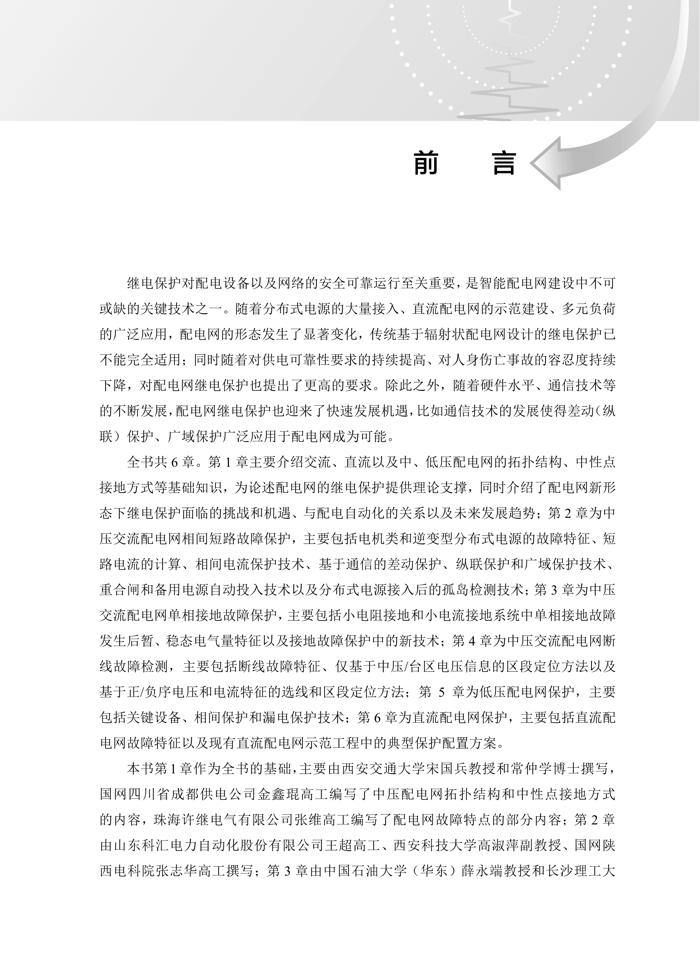 本书论述了智能配电网的继电保护技术,共 6 章,内容包括概论、中压交流配电网相间短路故障保护、中压交流配电网单相接地故障保护、中压交流配电网断线故障检测、低压配电网保护、直流配电网保护。本书注重理论与实践相结合,尽量避免复杂的公式推导,以基本原理和实践中的关键技术为核心,并辅以示范工程案例,使内容更加贴近工程实际。