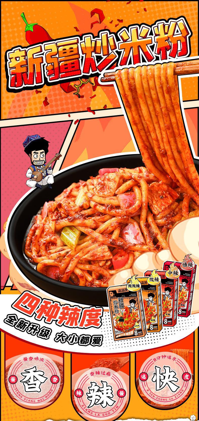 【麻辣鲜香扑鼻!爆辣新疆炒米粉】香辣快,方便速食,拌粉,炒粉,鲜香过瘾,网红小吃,热辣爽口Q弹爽滑,方便速食8分钟炒粉330g湿拌粉网红小吃—DD健康