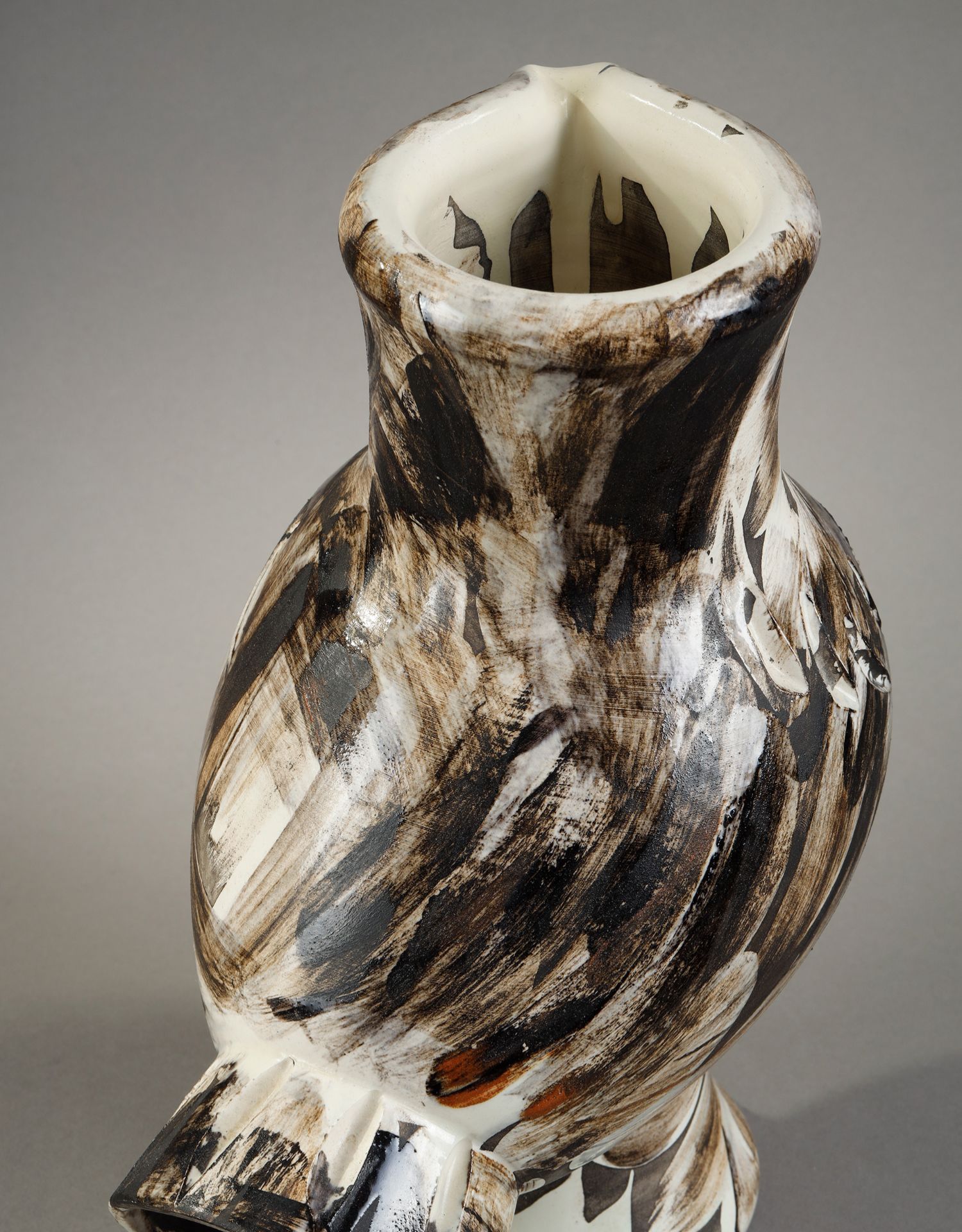 独角鹿西洋古董毕加索与法国Madoura工坊合作限量陶瓷瓶猫头鹰